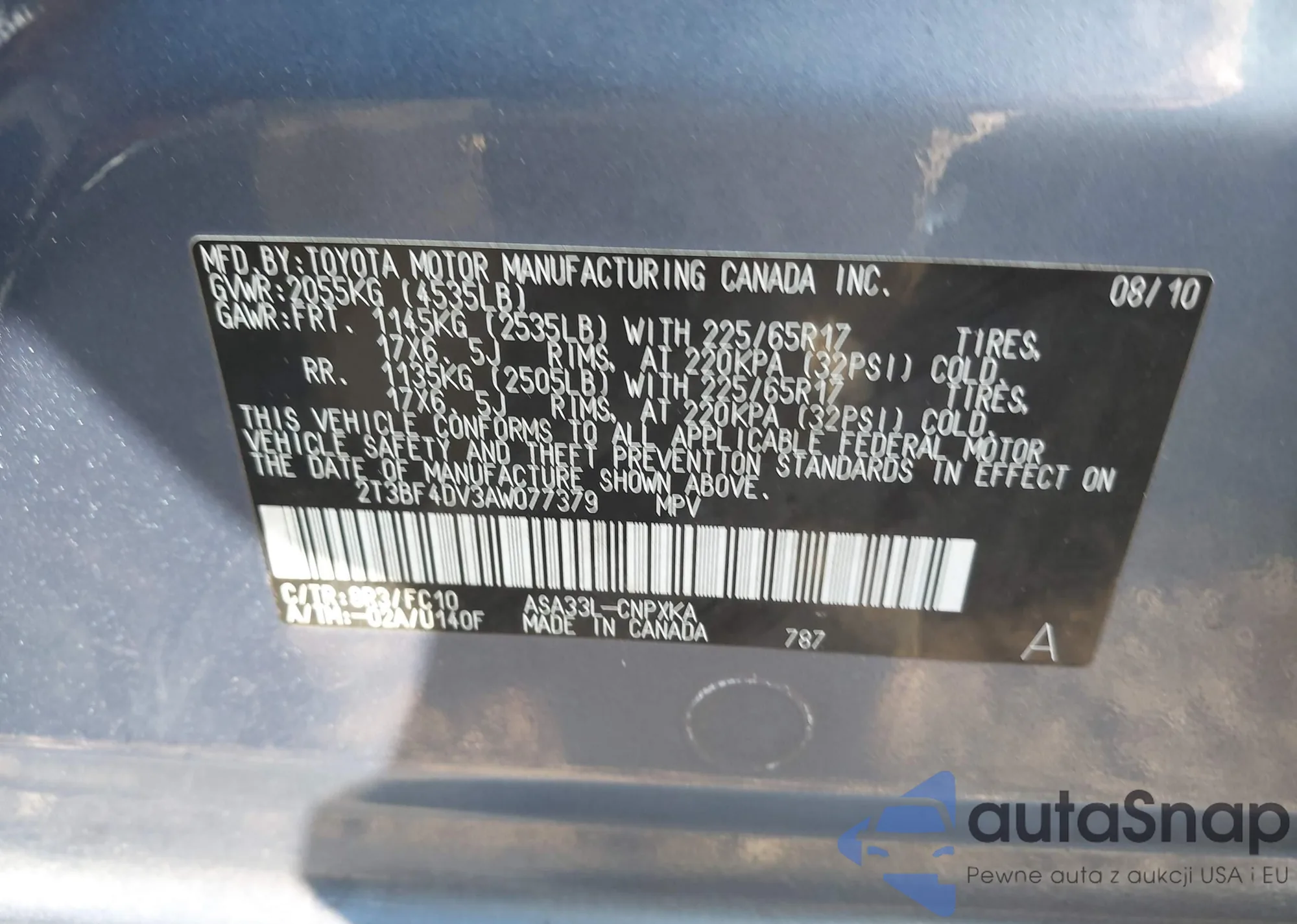 VIN: 2T3BF4DV3AW077379