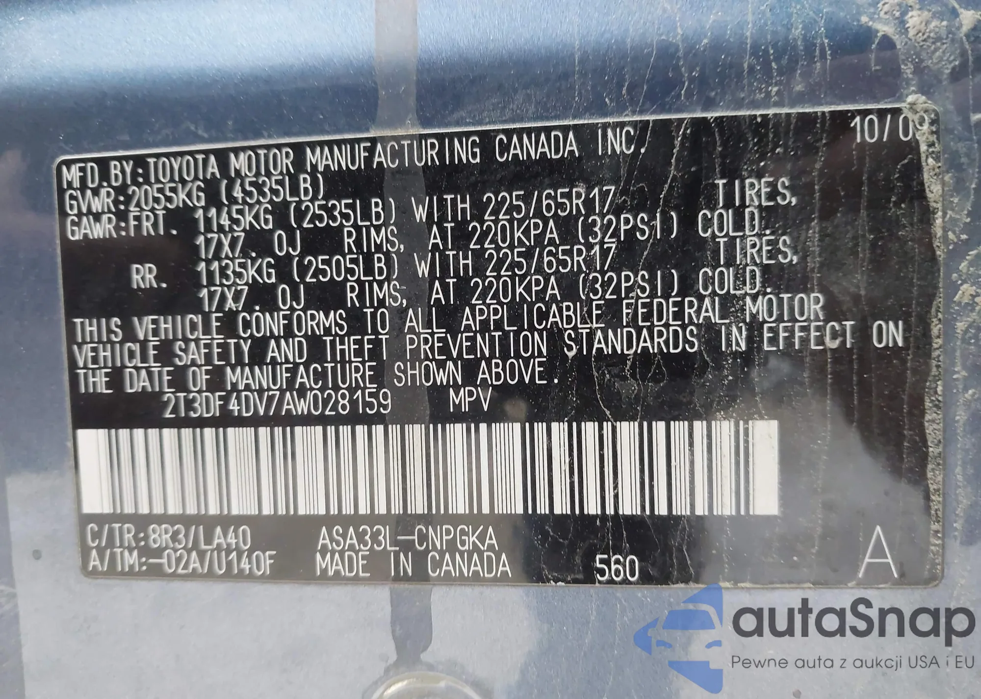 Автомобиль Toyota RAV 4 2010 (VIN 2T3DF4DV7AW028159) ранее не участвовал в торгах. Документы чистые, пробег соответствует или ниже среднего по рынку. Продаётся страховой компанией — рекомендуем покупку. Доставка в порт займет около 6–8 недель.