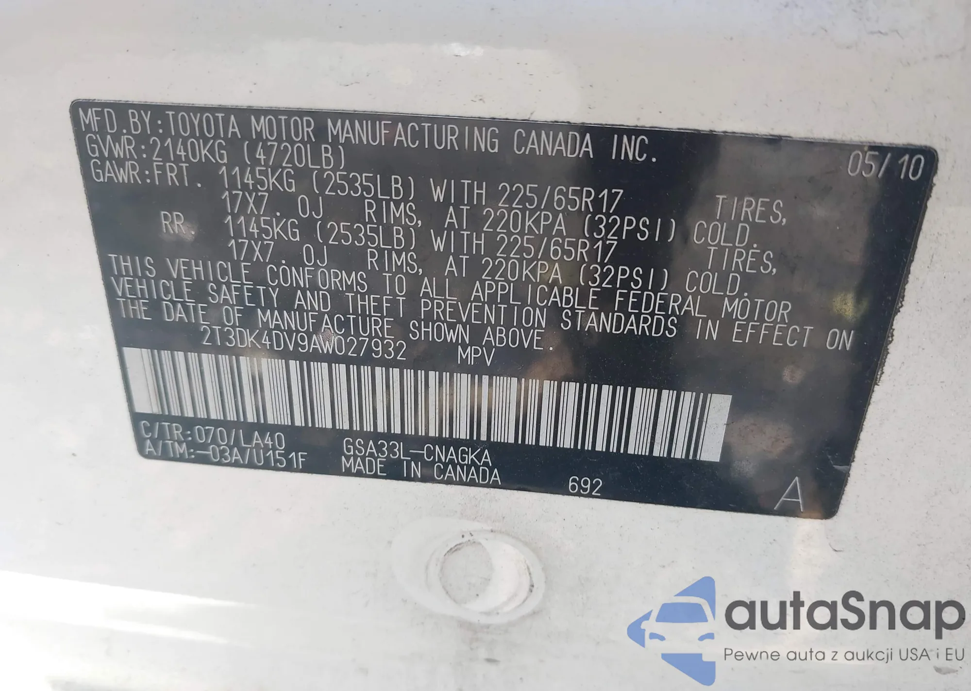VIN: 2T3DK4DV9AW027932