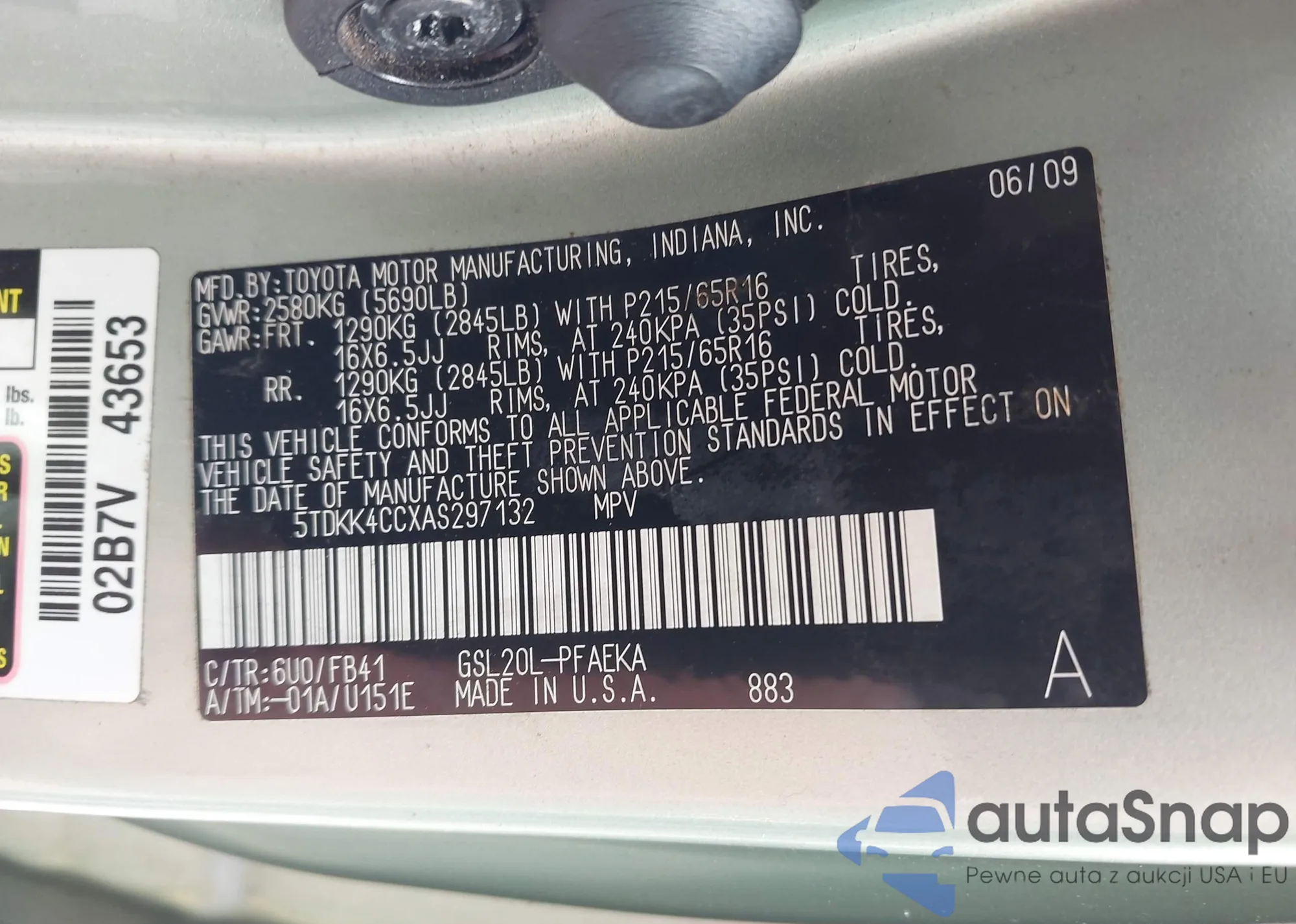 VIN: 5TDKK4CCXAS297132