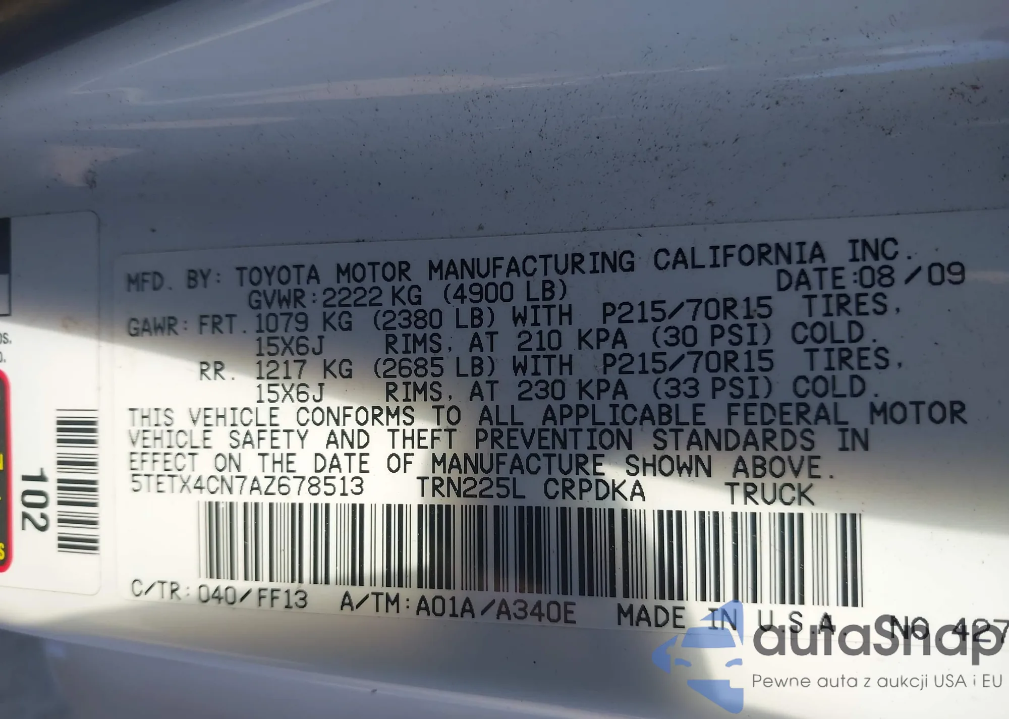 VIN: 5TETX4CN7AZ678513