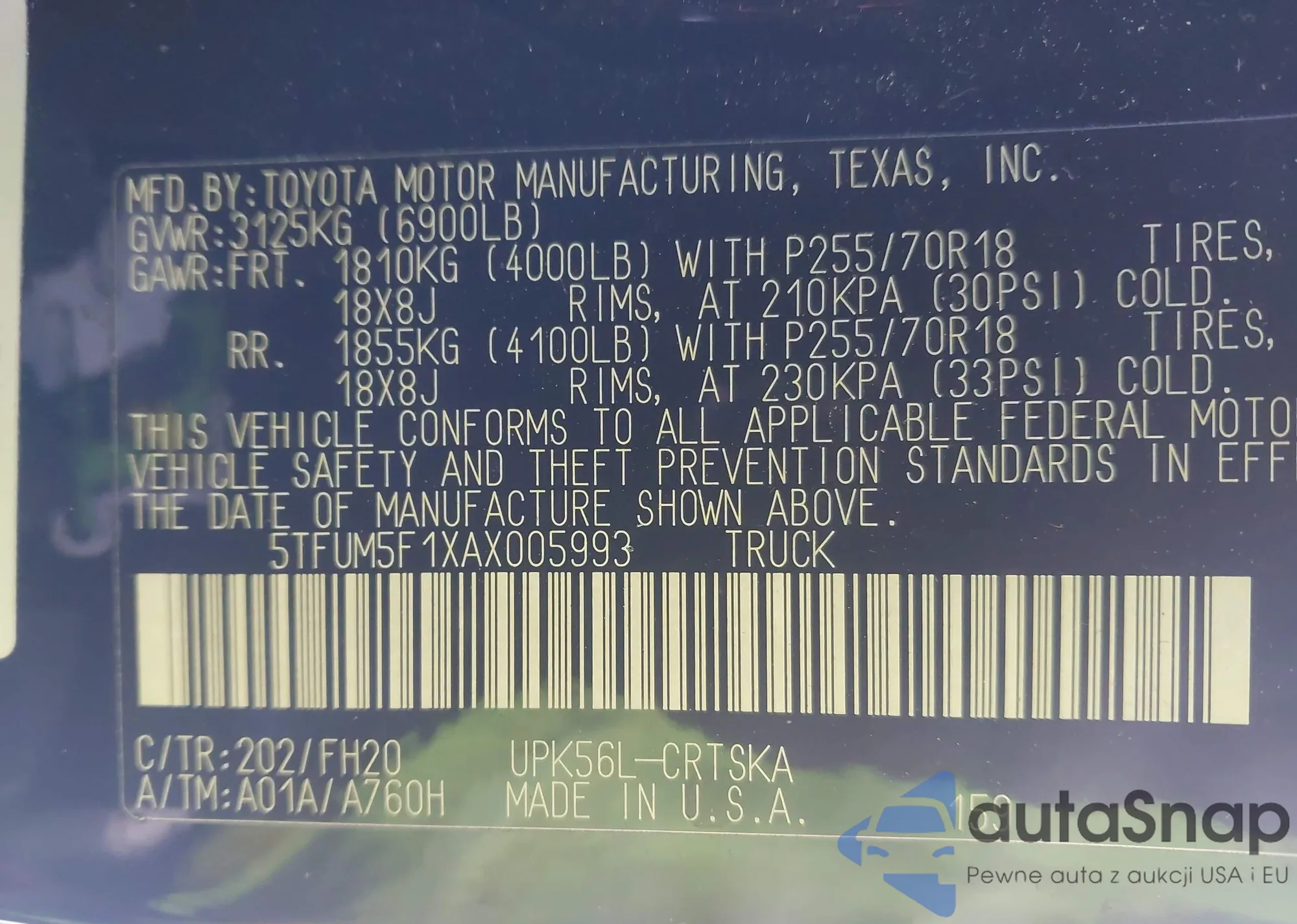 VIN: 5TFUM5F1XAX005993