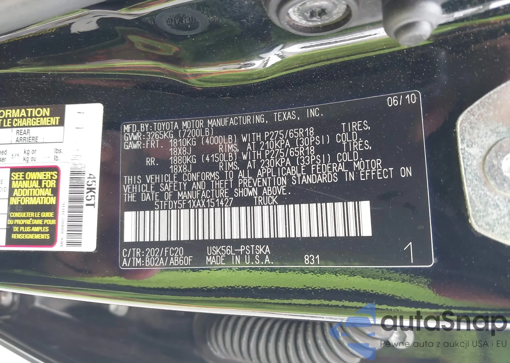 VIN: 5TFDY5F1XAX151427