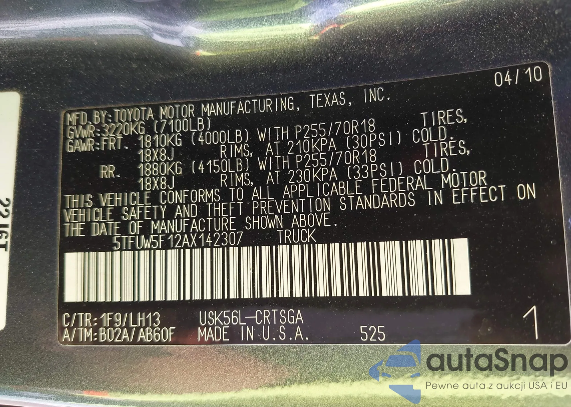 VIN: 5TFUW5F12AX142307