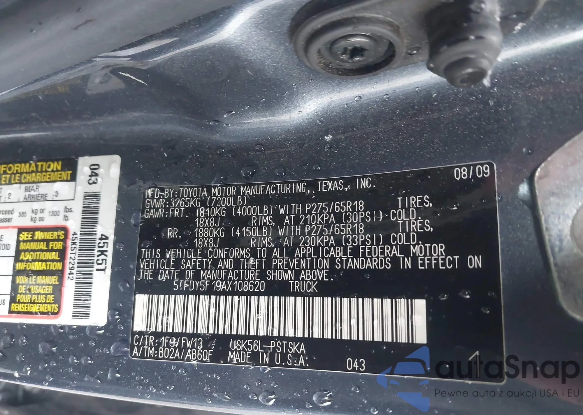 Автомобиль Toyota Tundra 2010 (VIN 5TFDY5F19AX108620) ранее не участвовал в торгах. Документы чистые, пробег соответствует или ниже среднего по рынку. Продаётся страховой компанией — рекомендуем покупку. Доставка в порт займет около 6–8 недель.