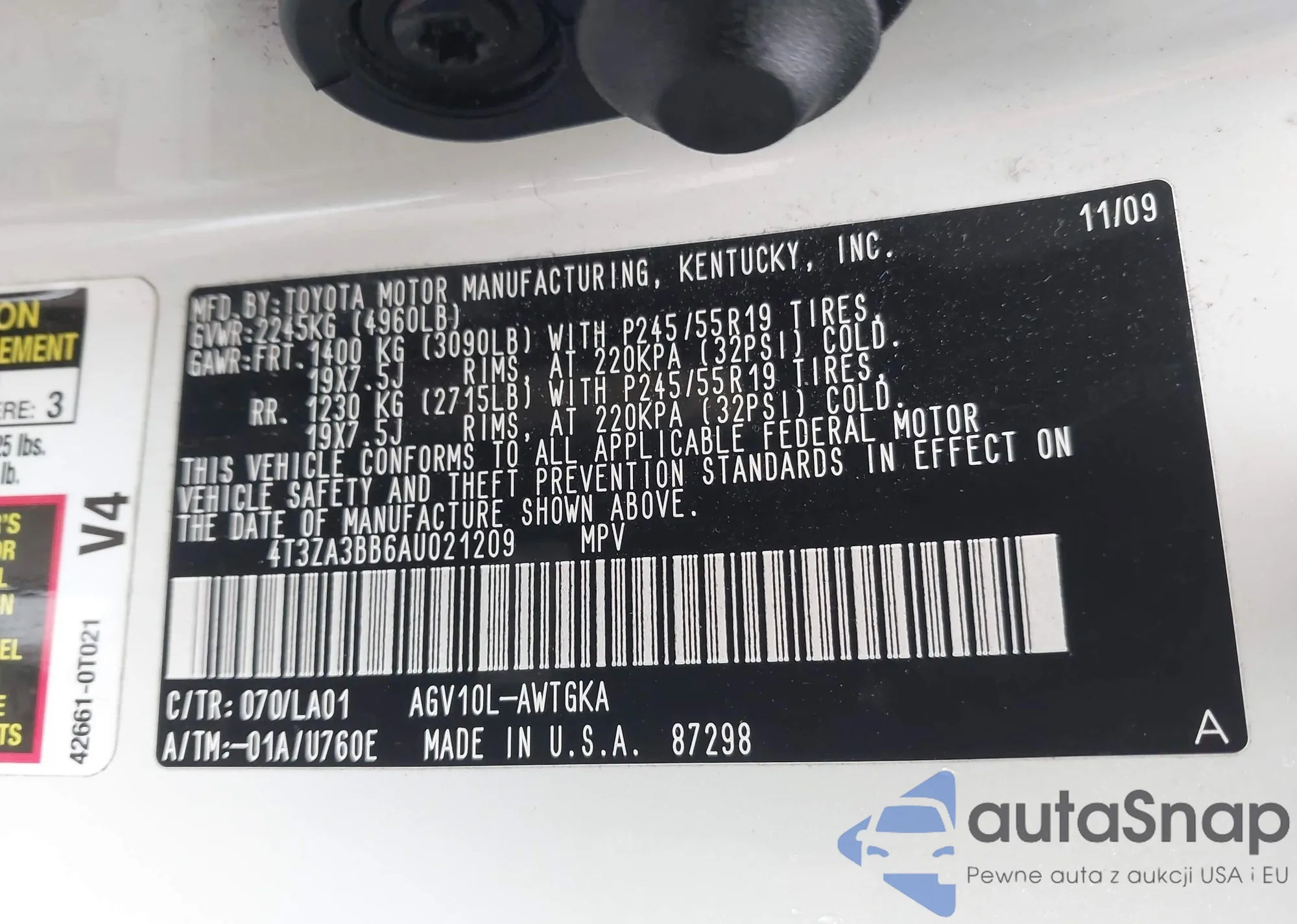 VIN: 4T3ZA3BB6AU021209