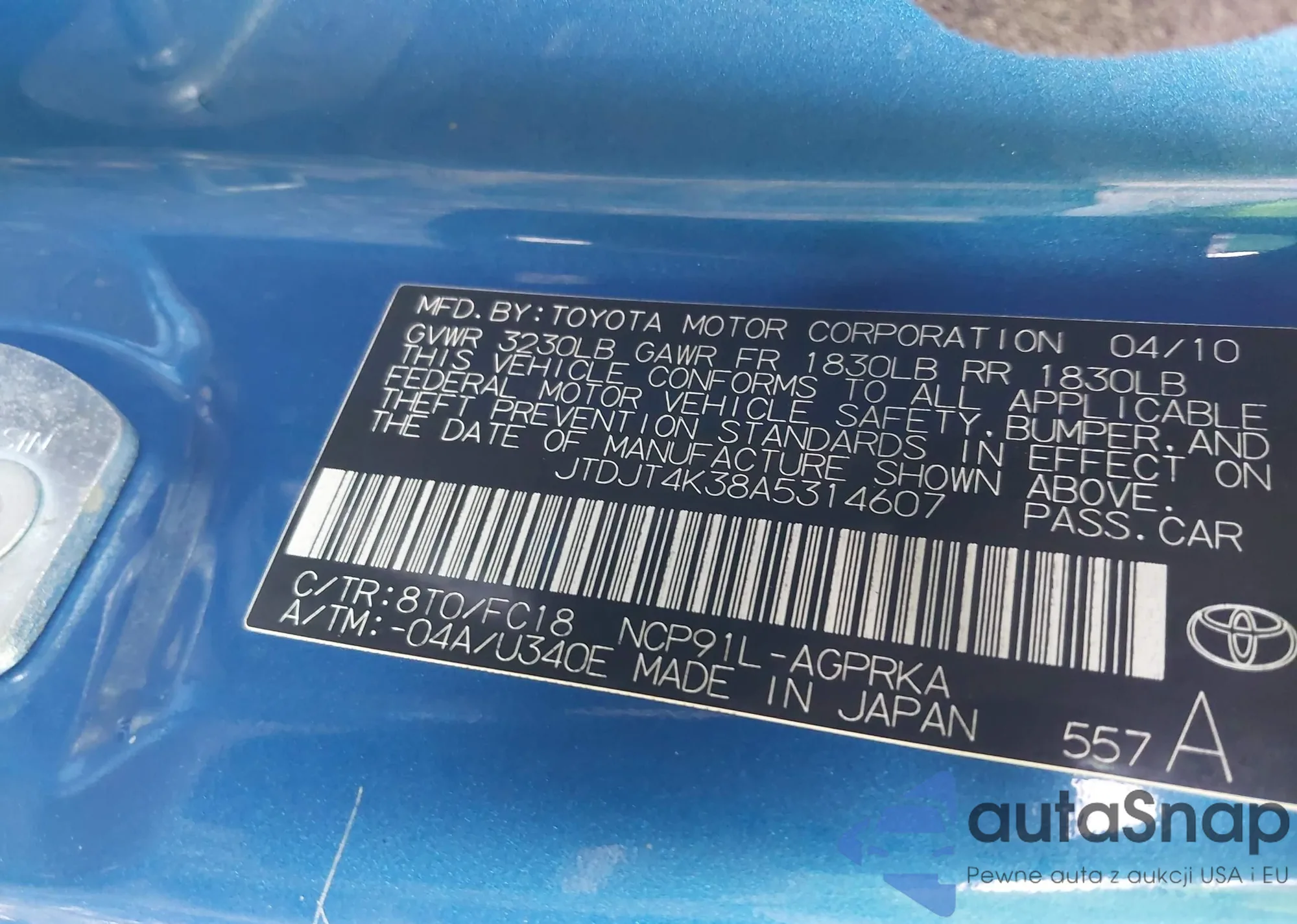 VIN: JTDJT4K38A5314607
