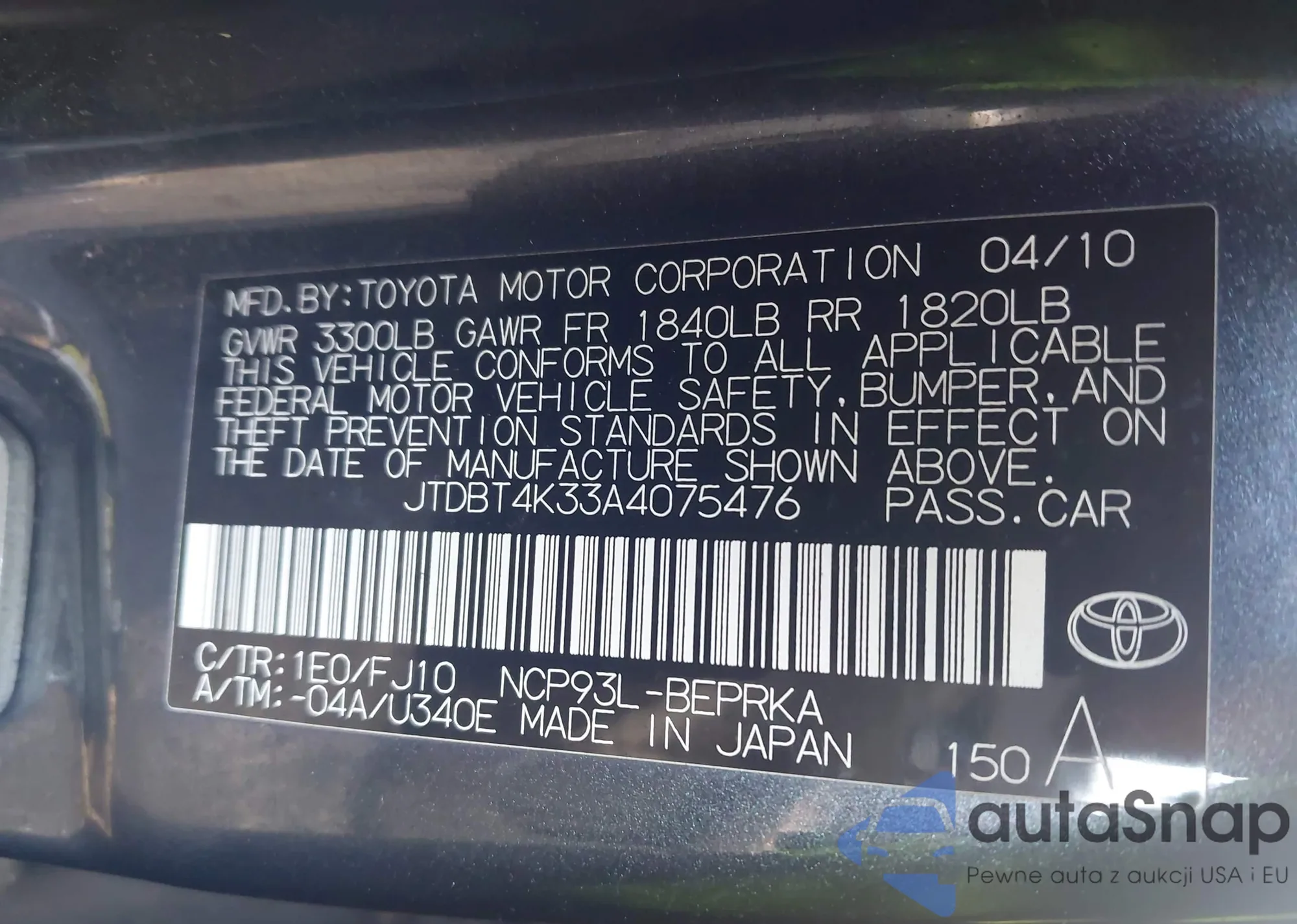 VIN: JTDBT4K33A4075476