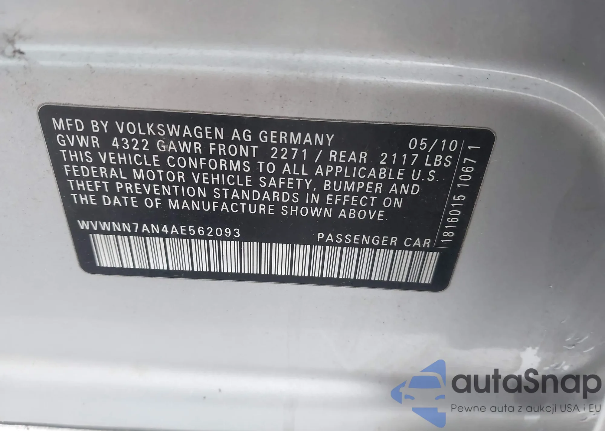 VIN: WVWNN7AN4AE562093