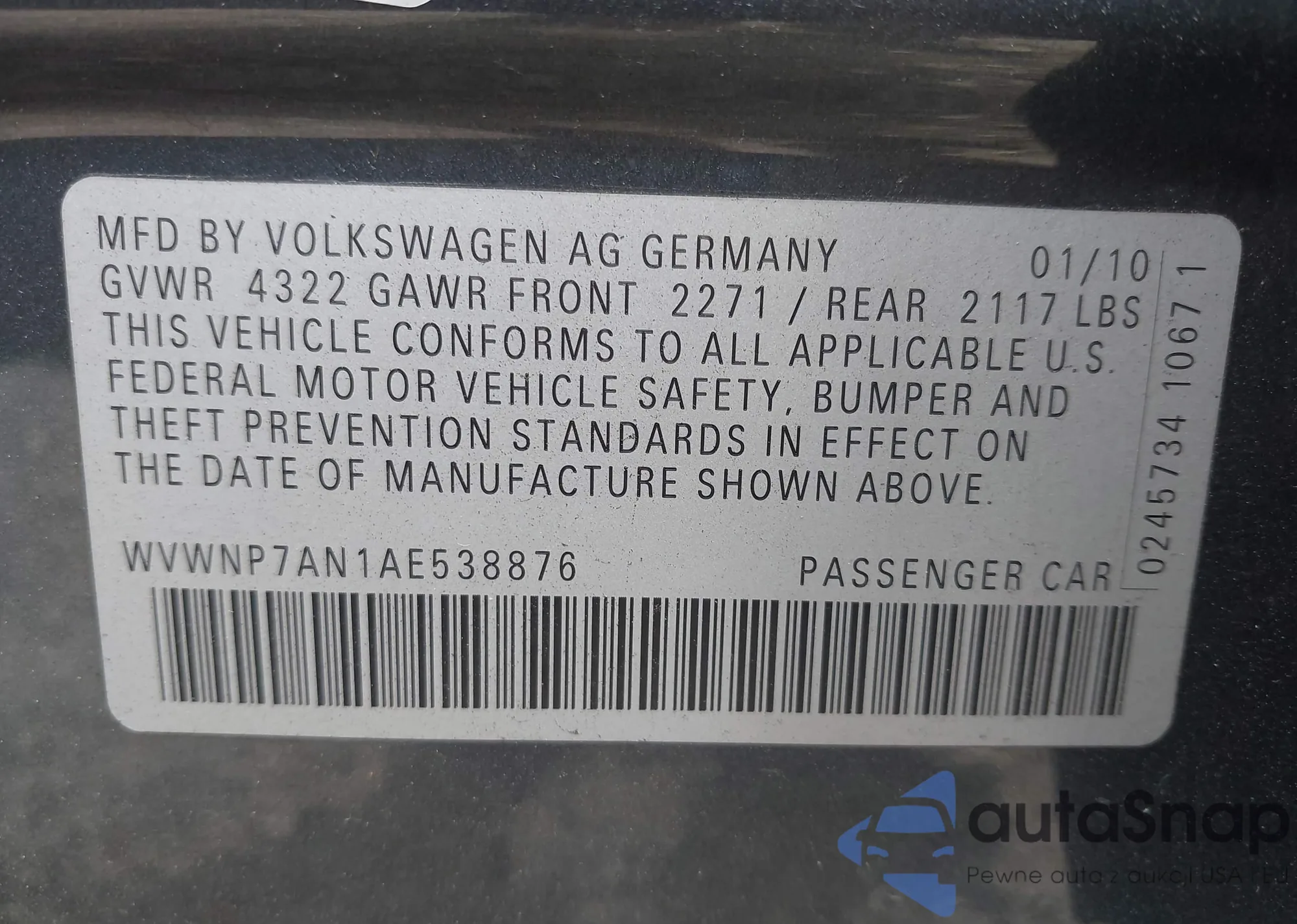 Автомобиль Volkswagen Passat CC 2010 (VIN WVWNP7AN1AE538876) продаётся непроверенным продавцом. Рекомендуем проверить отчет Carfax и подтвердить возможность регистрации перед покупкой.