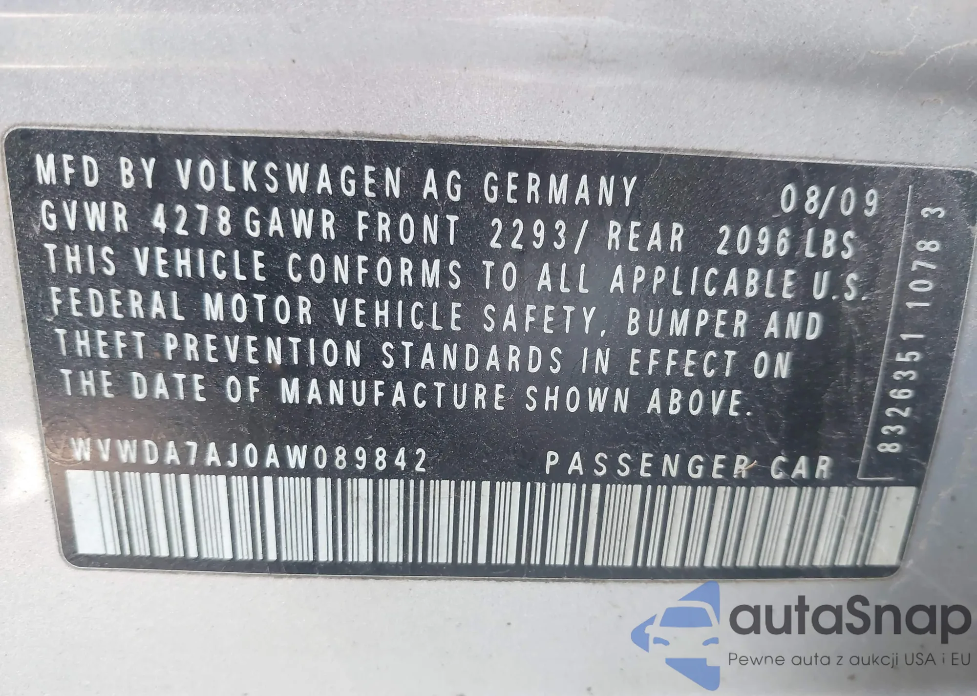 VIN: WVWDA7AJ0AW089842