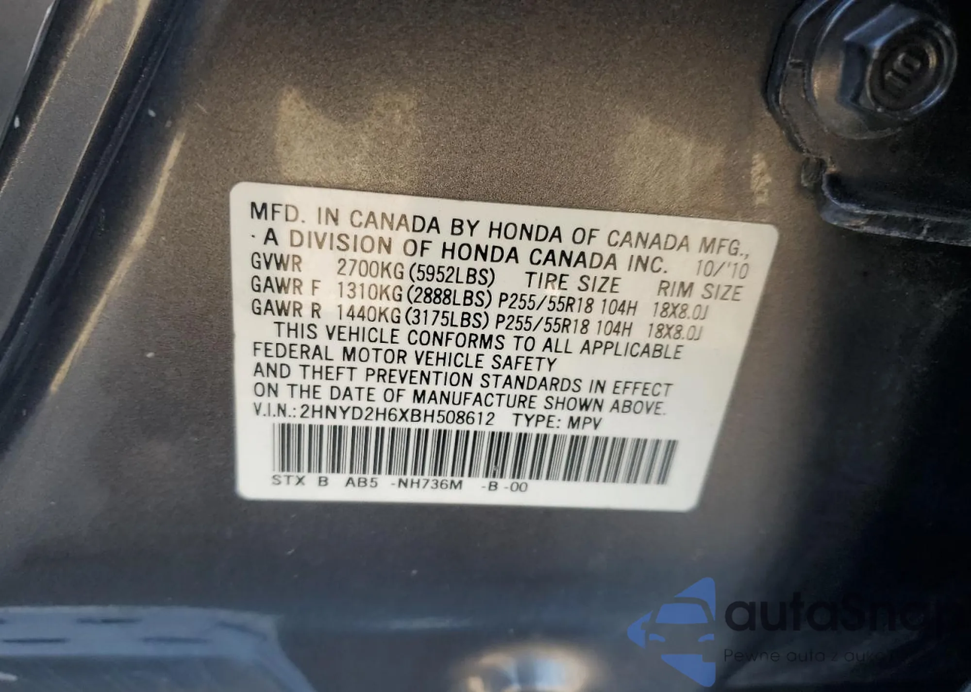 VIN: 2HNYD2H6XBH508612