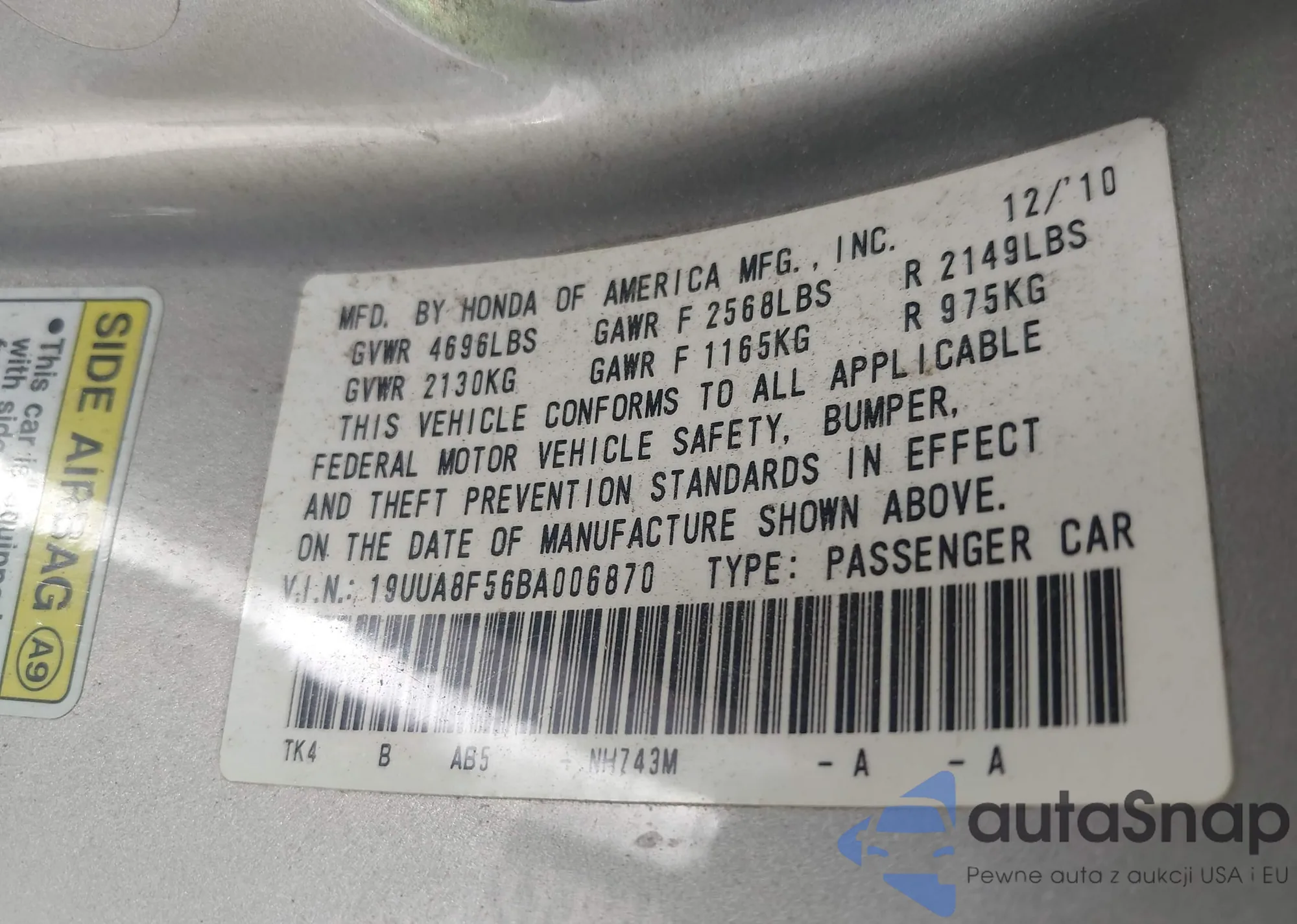 VIN: 19UUA8F56BA006870