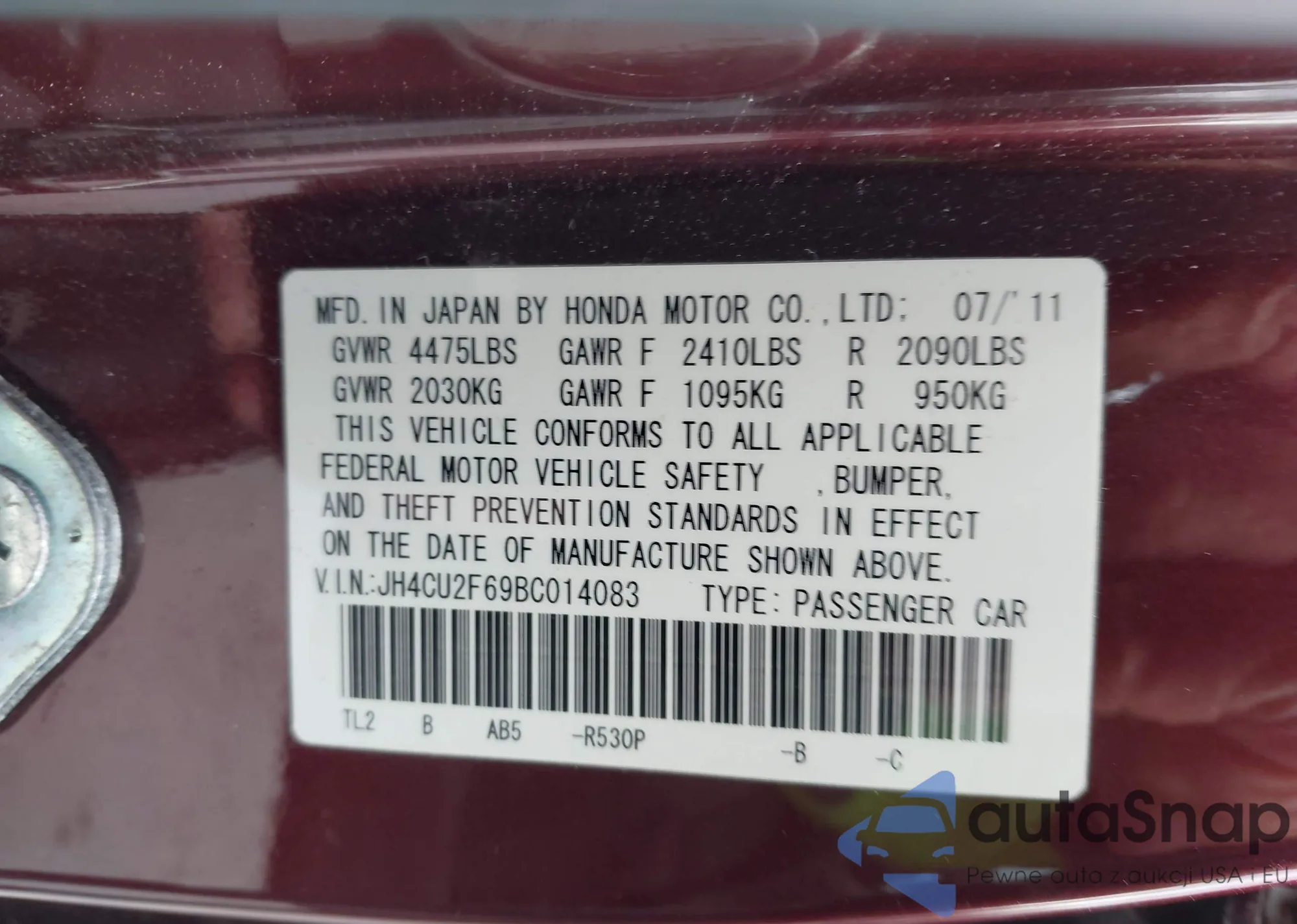 VIN: JH4CU2F69BC014083