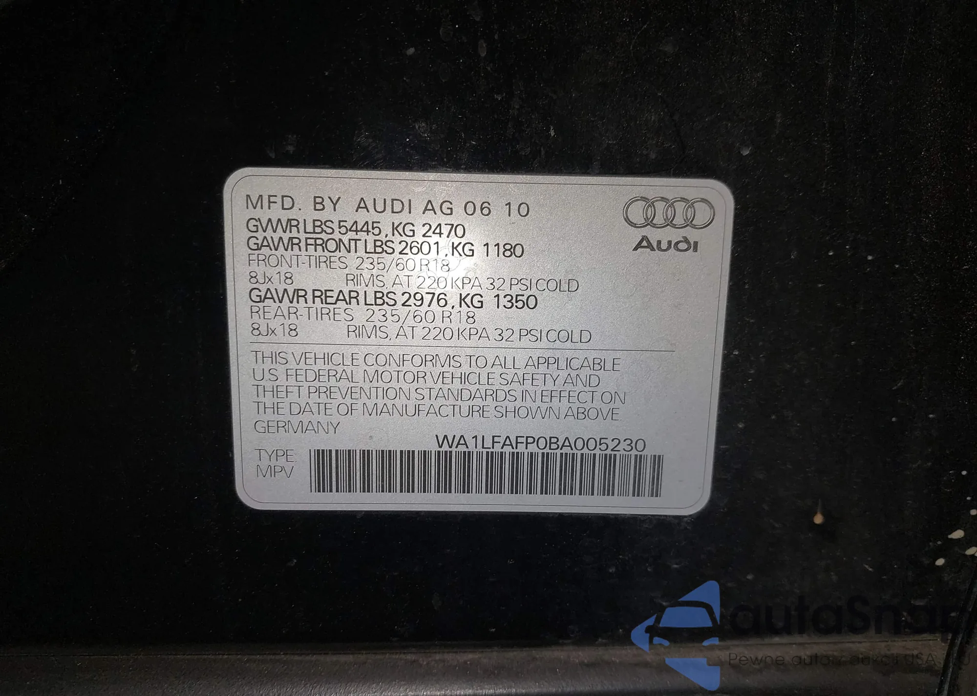 • VIN: WA1LFAFP0BA005230