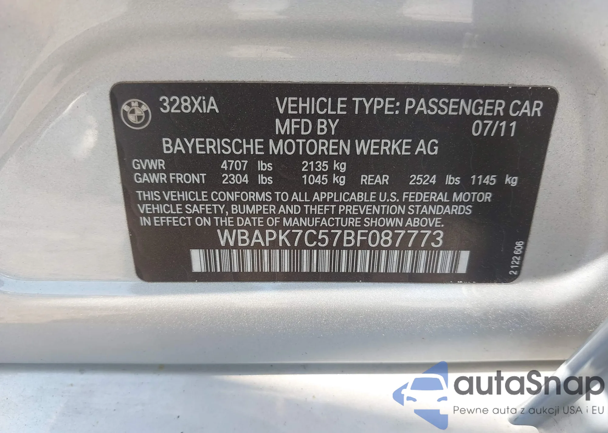 VIN: WBAPK7C57BF087773
