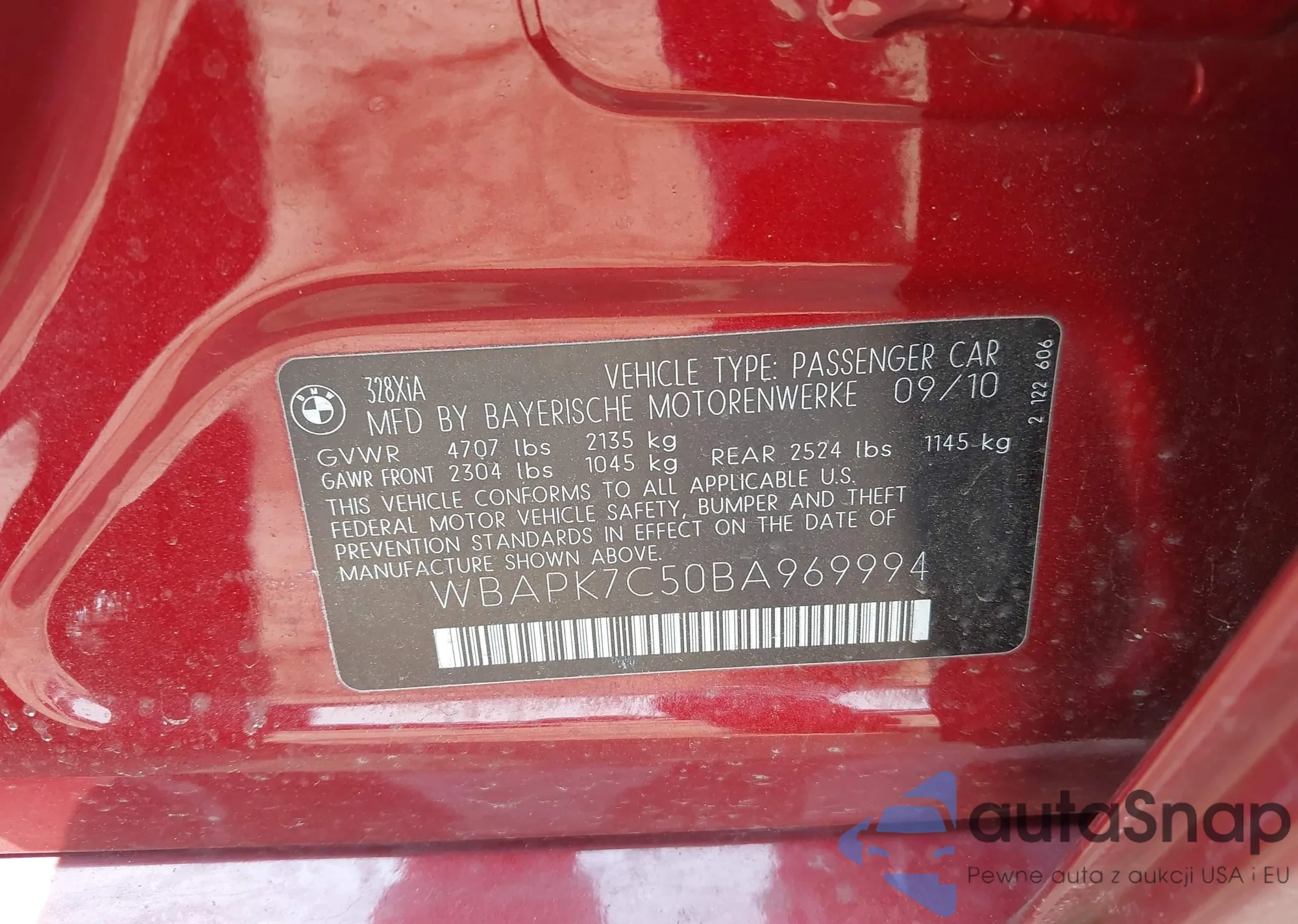 VIN: WBAPK7C50BA969994