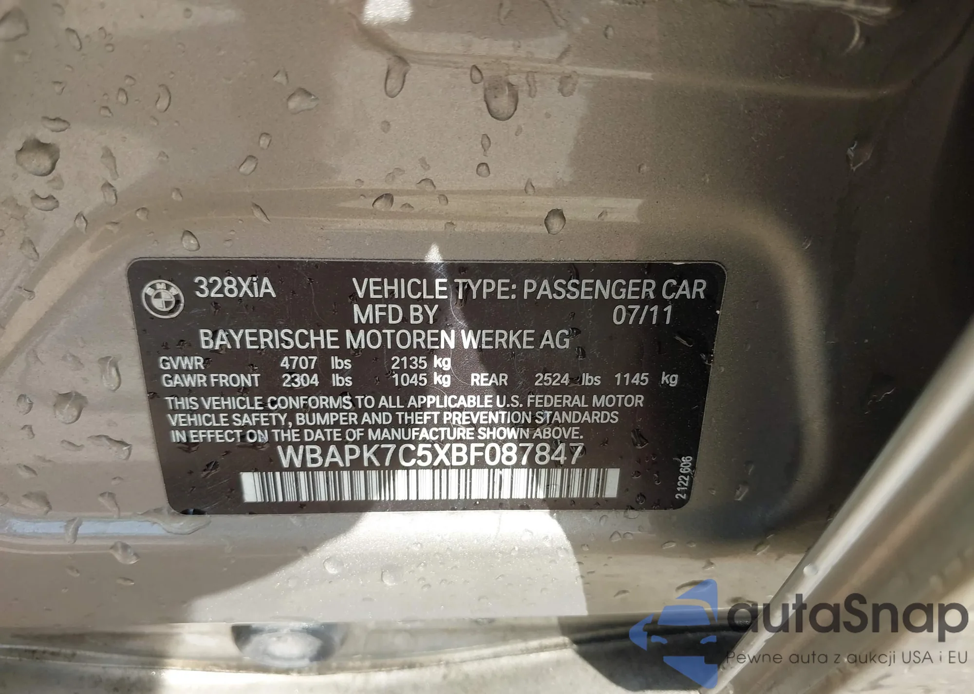VIN: WBAPK7C5XBF087847