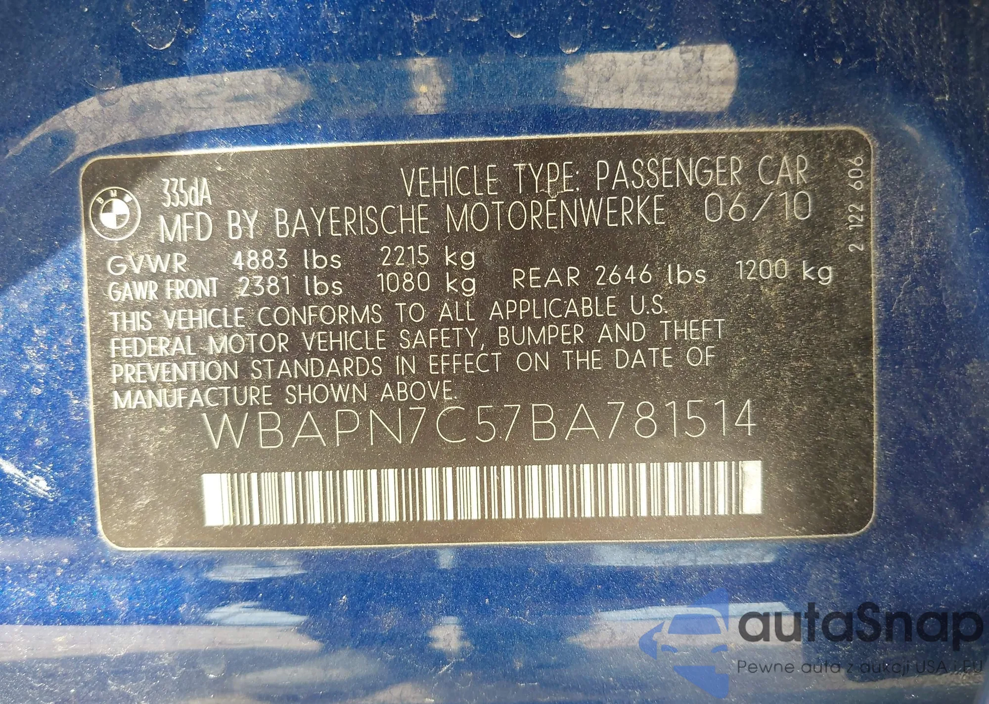 VIN: WBAPN7C57BA781514