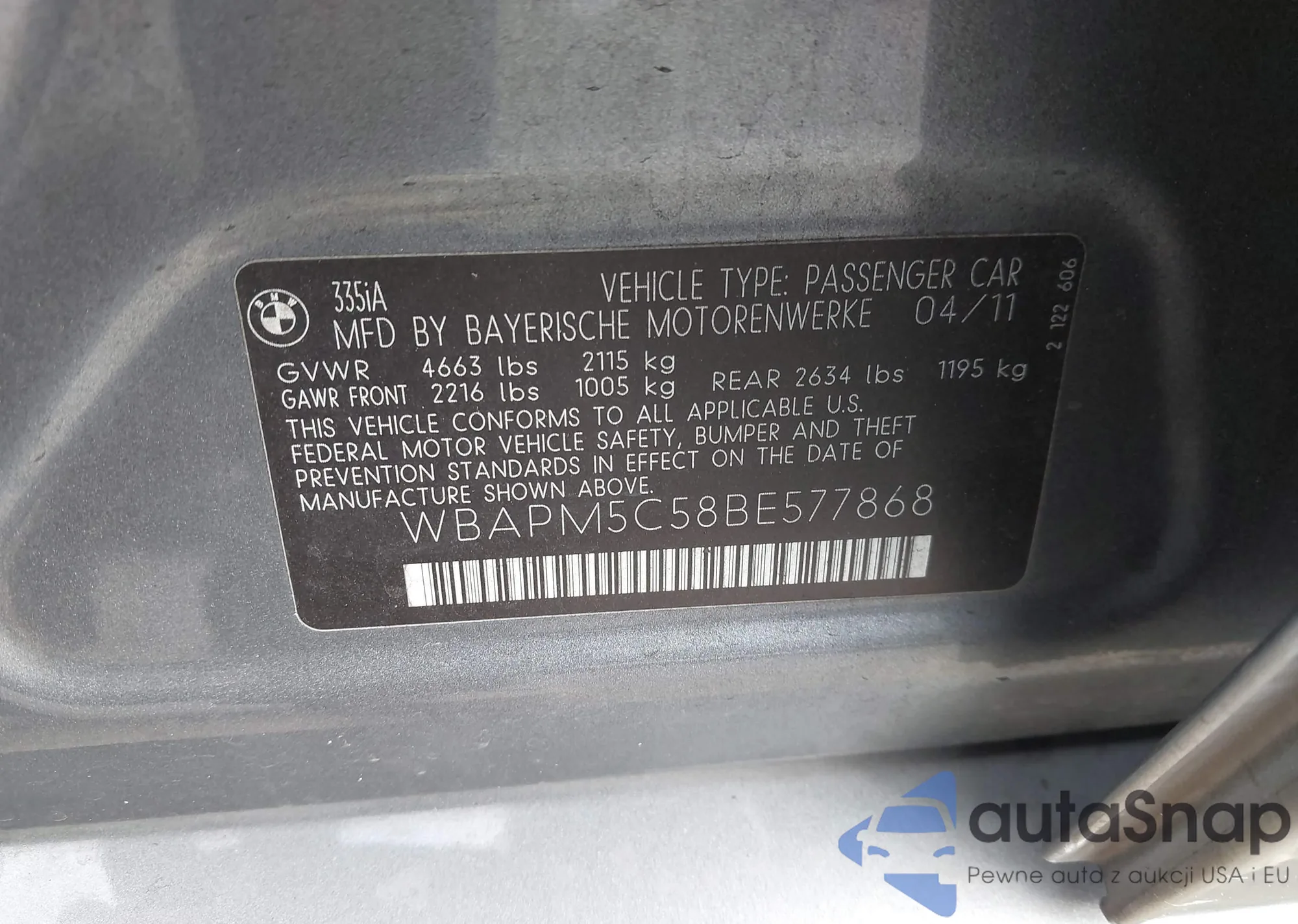 VIN: WBAPM5C58BE577868