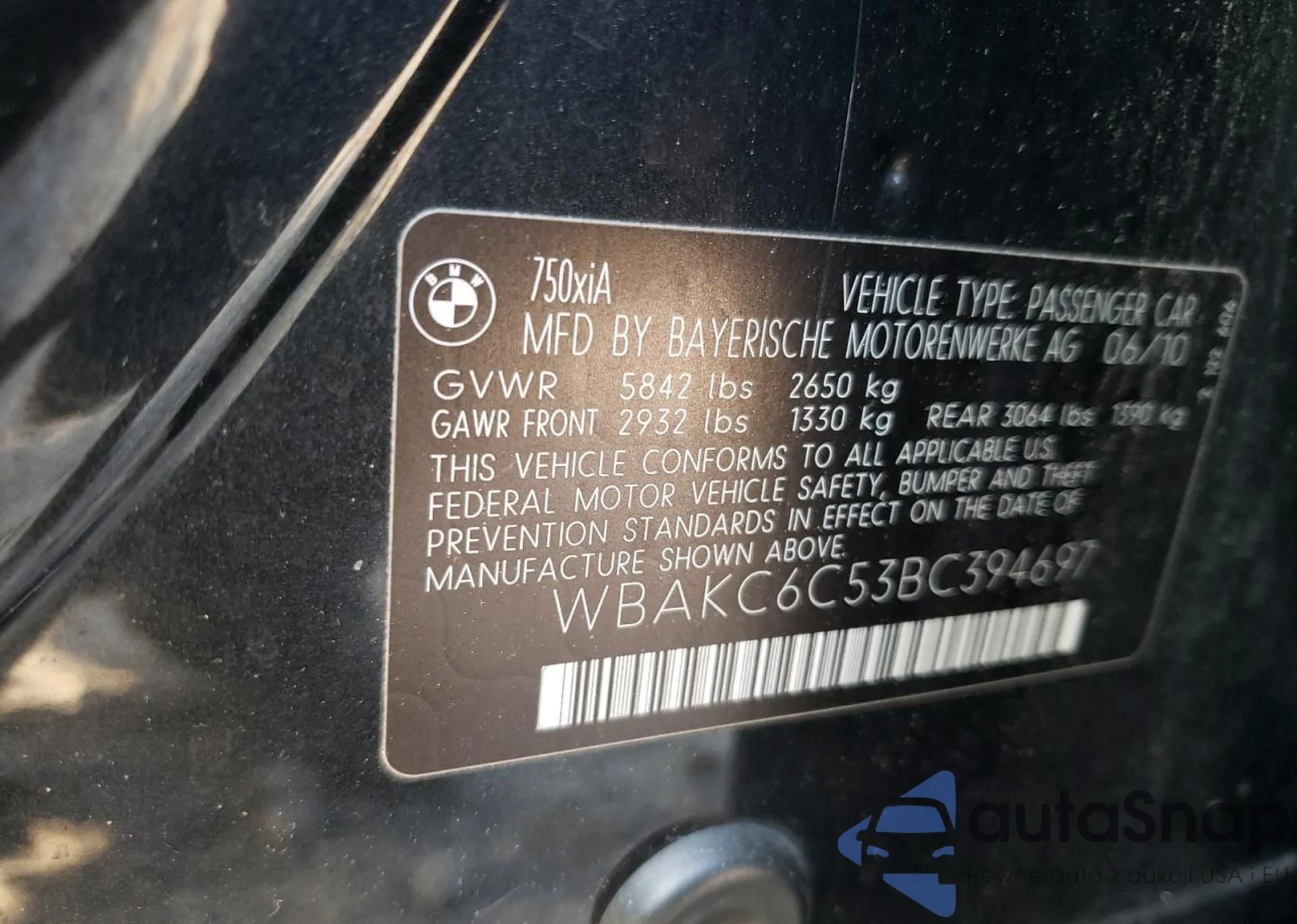VIN: WBAKC6C53BC394697