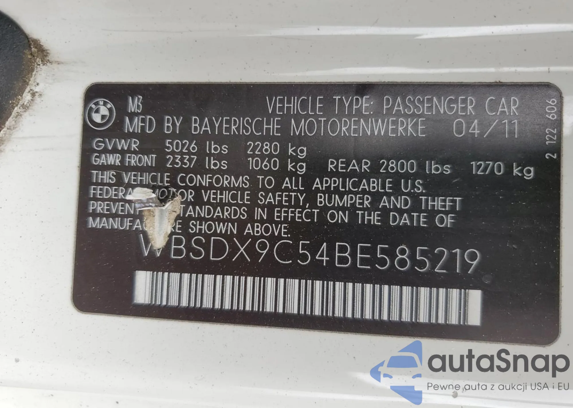 VIN: WBSDX9C54BE585219