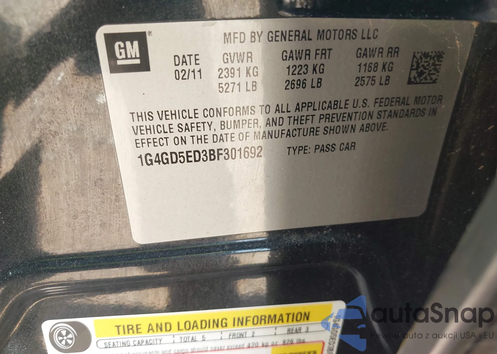 • VIN: 1G4GD5ED3BF301692