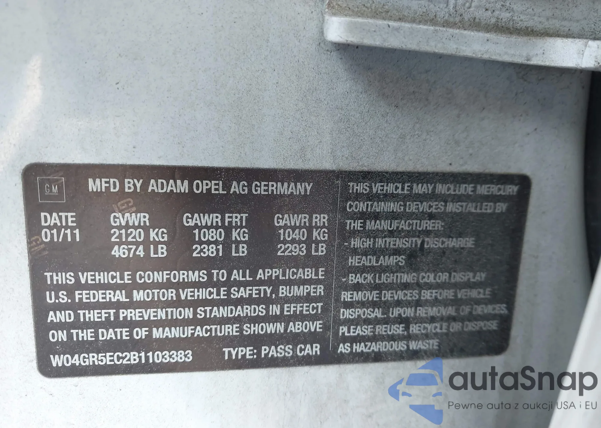 Автомобиль Buick Regal 2011 (VIN W04GR5EC2B1103383) ранее не участвовал в торгах. Документы чистые, пробег соответствует или ниже среднего по рынку. Продаётся страховой компанией — рекомендуем покупку. Доставка в порт займет около 6–8 недель.