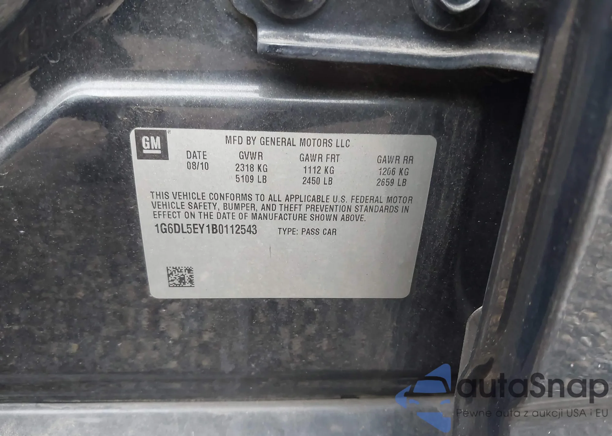 VIN: 1G6DL5EY1B0112543