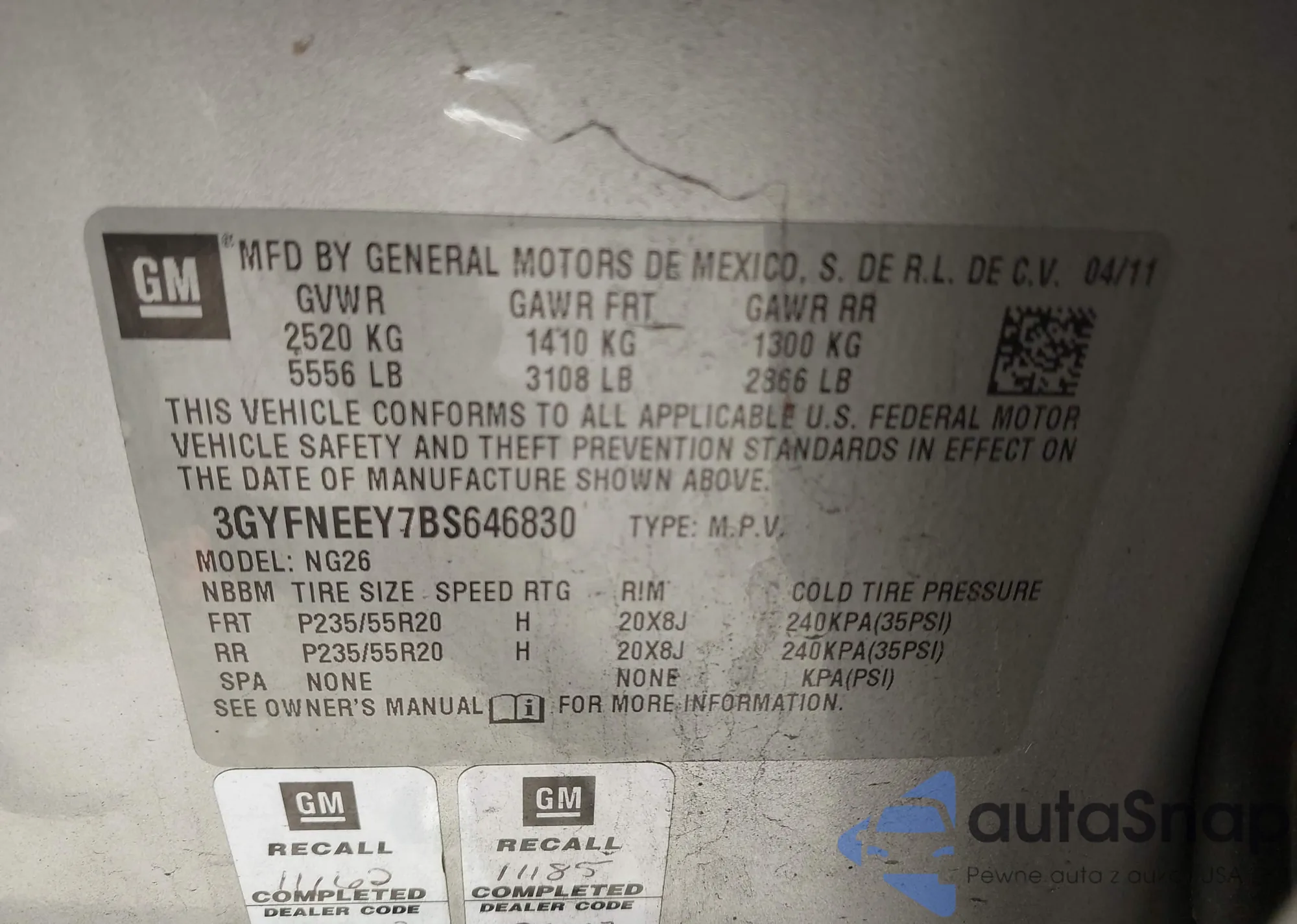 VIN: 3GYFNEEY7BS646830