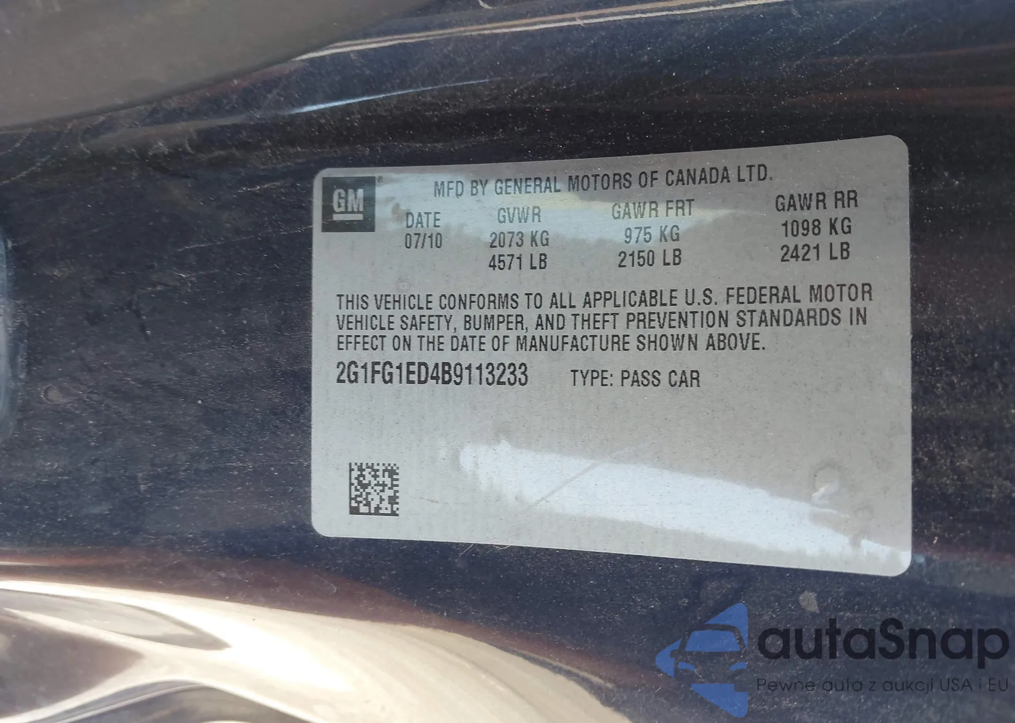 VIN: 2G1FG1ED4B9113233