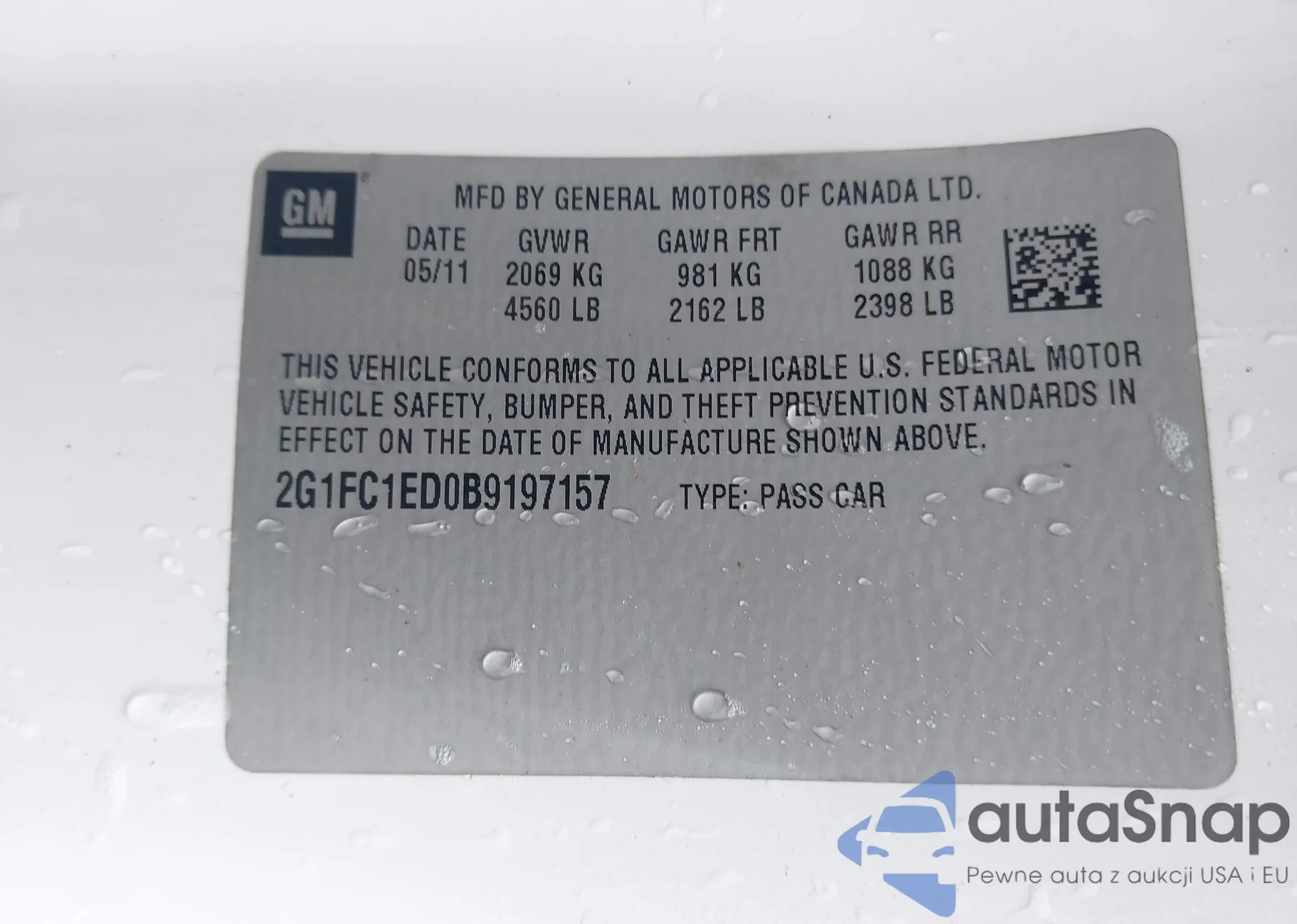 VIN: 2G1FC1ED0B9197157