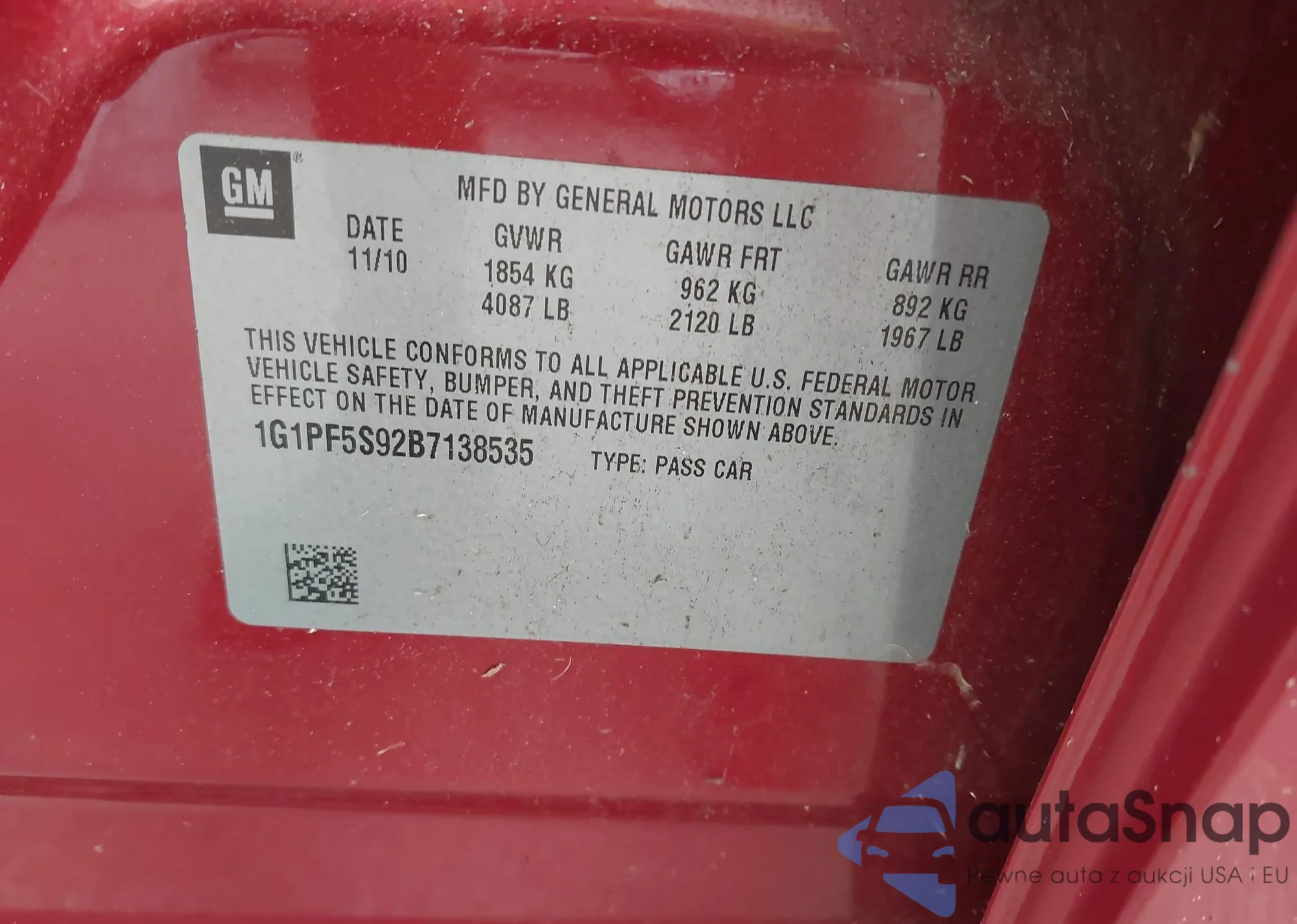 VIN: 1G1PF5S92B7138535