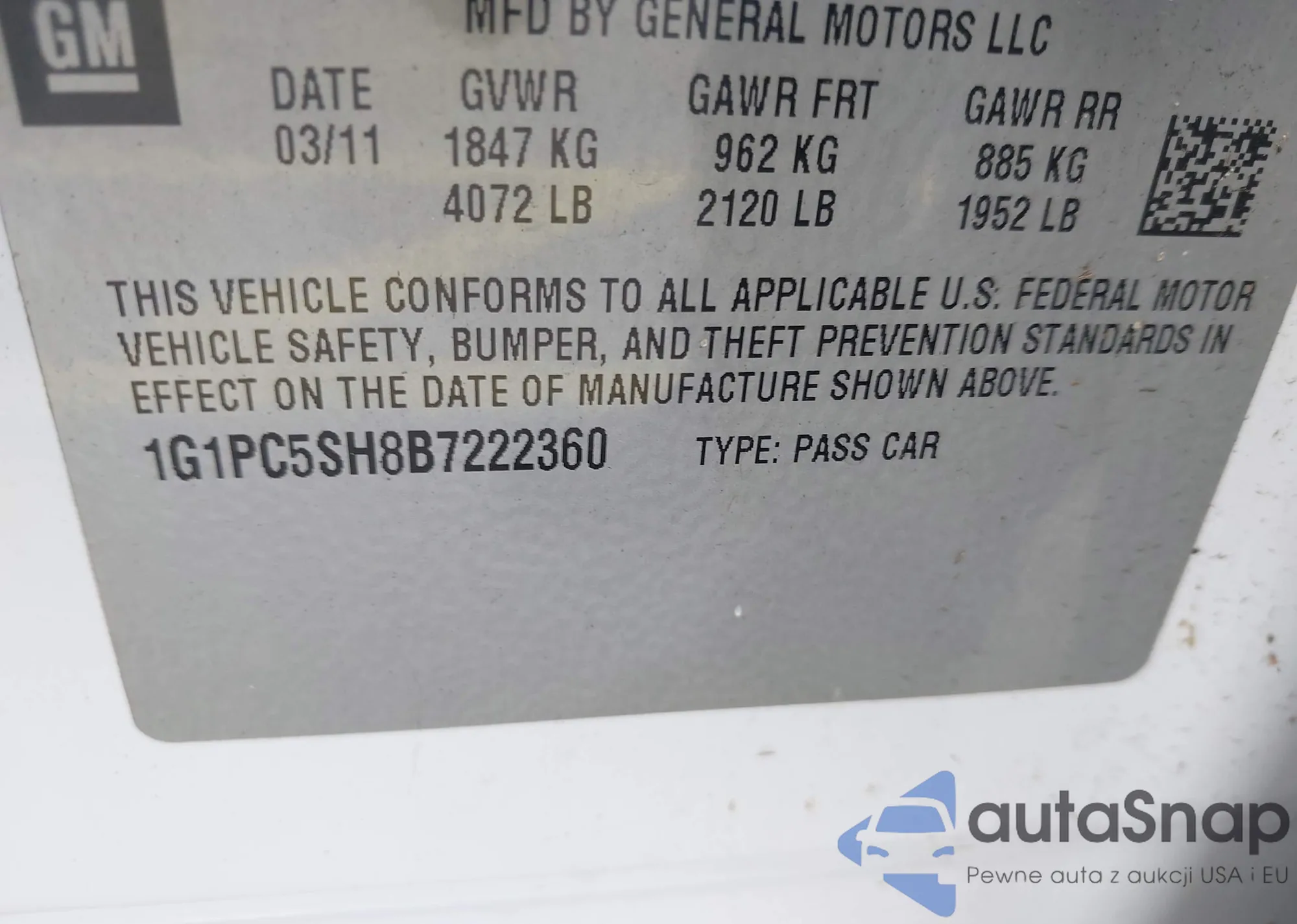VIN: 1G1PC5SH8B7222360