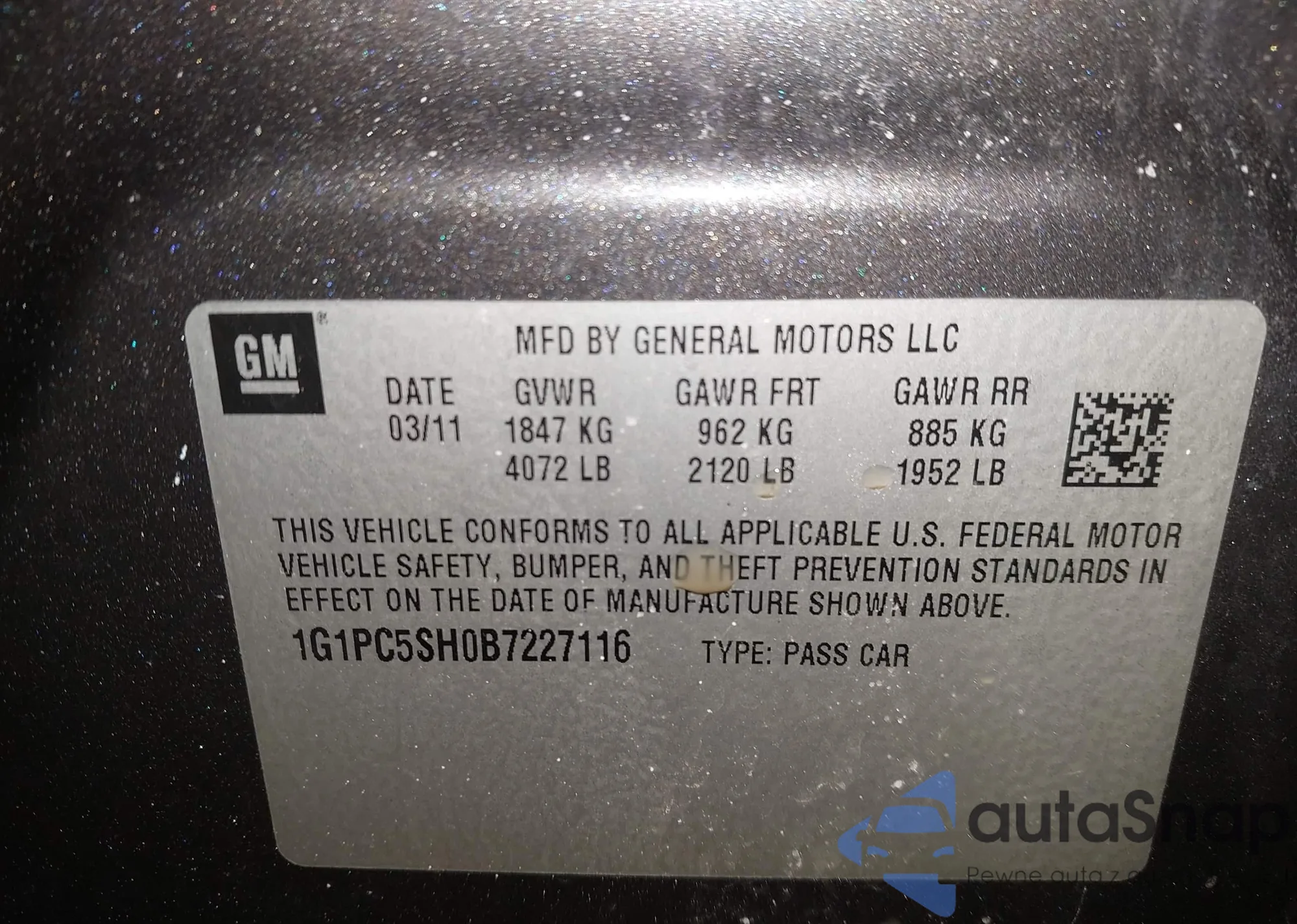 VIN: 1G1PC5SH0B7227116