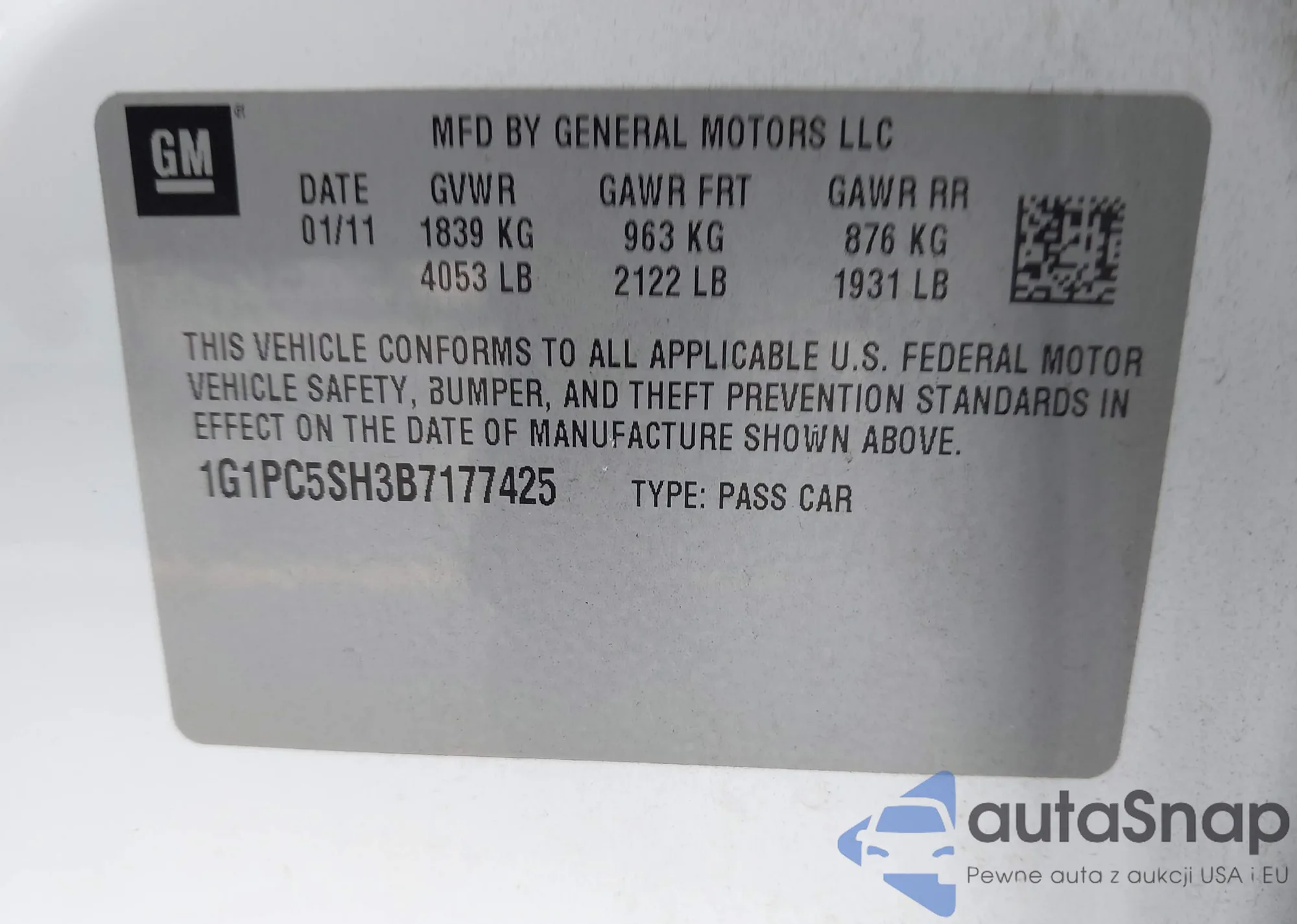 VIN: 1G1PC5SH3B7177425