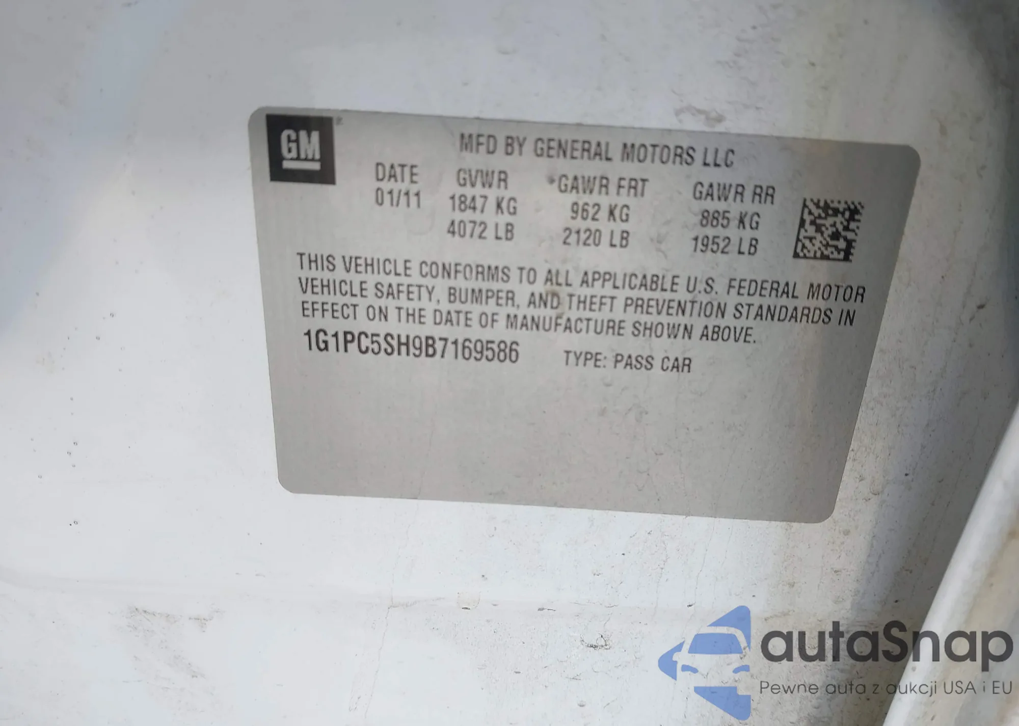 Автомобиль Chevrolet Cruze 2011 (VIN 1G1PC5SH9B7169586) ранее не участвовал в торгах. Документы чистые, пробег соответствует или ниже среднего по рынку. Продаётся страховой компанией — рекомендуем покупку. Доставка в порт займет около 6–8 недель.