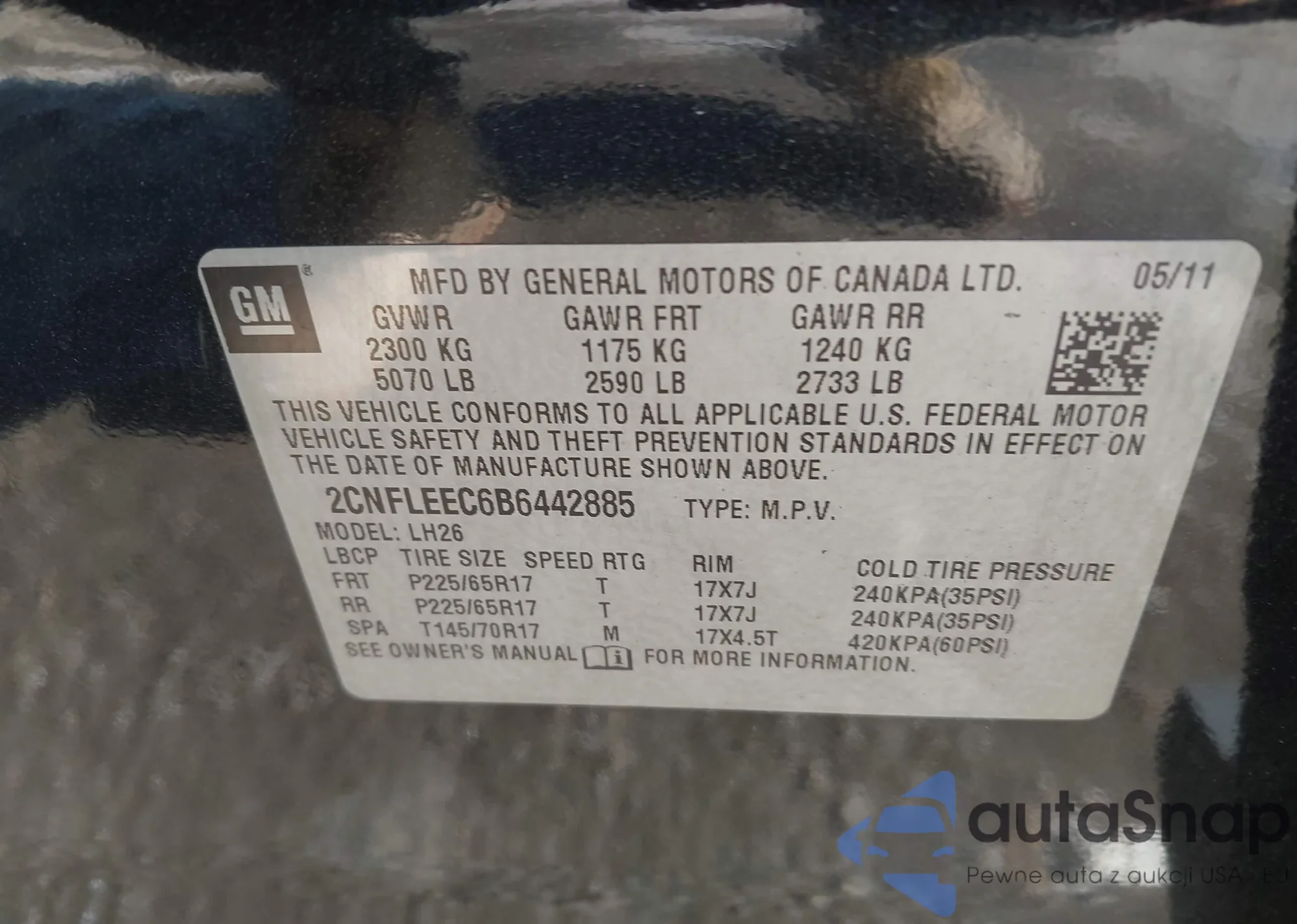 VIN: 2CNFLEEC6B6442885