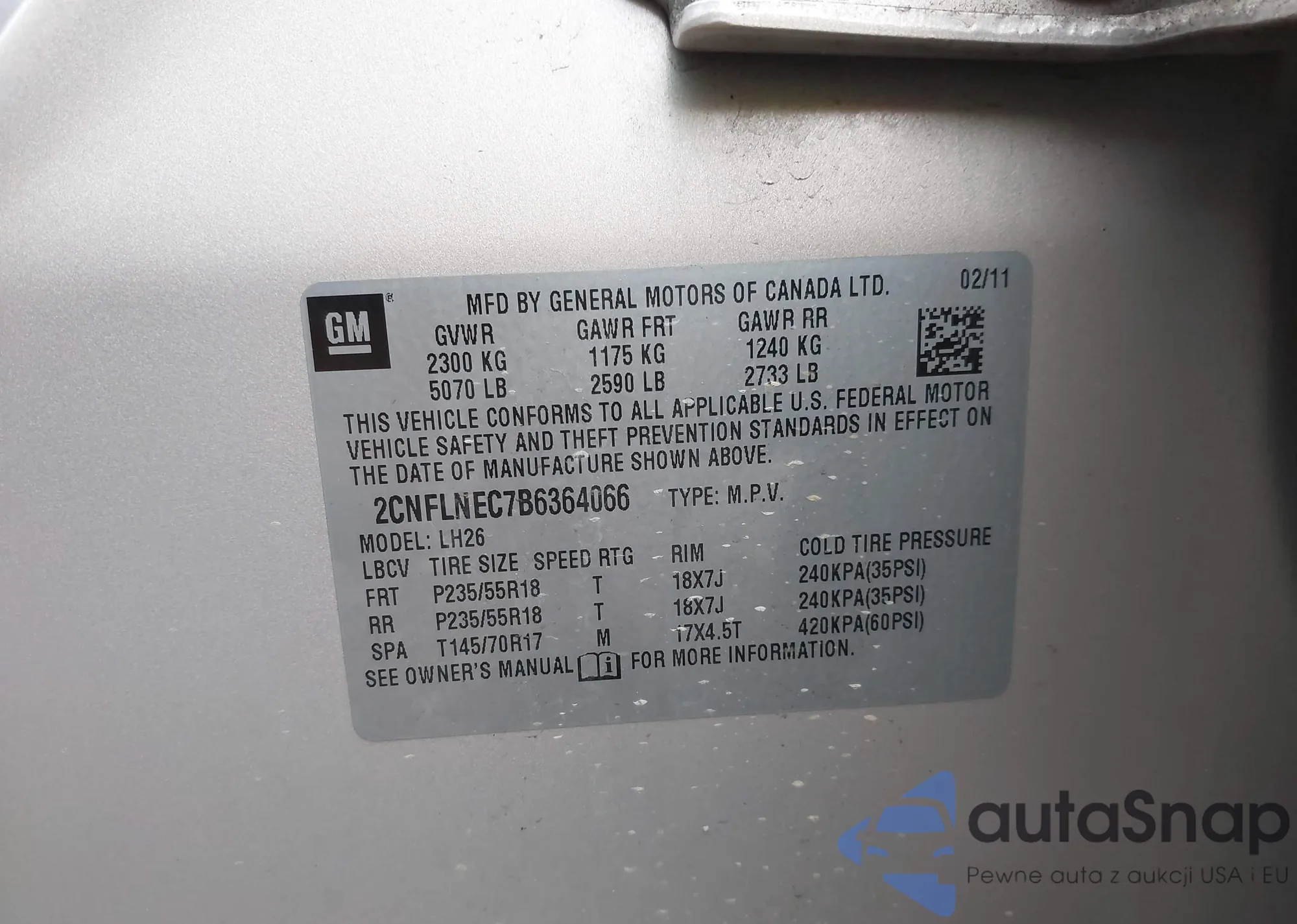 VIN: 2CNFLNEC7B6364066
