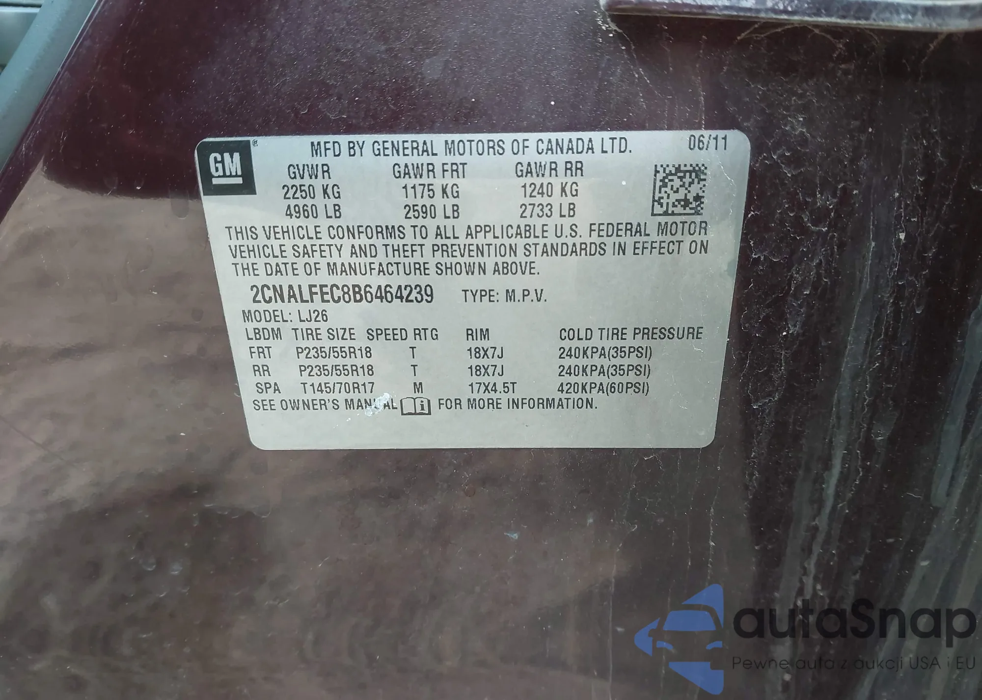VIN: 2CNALFEC8B6464239