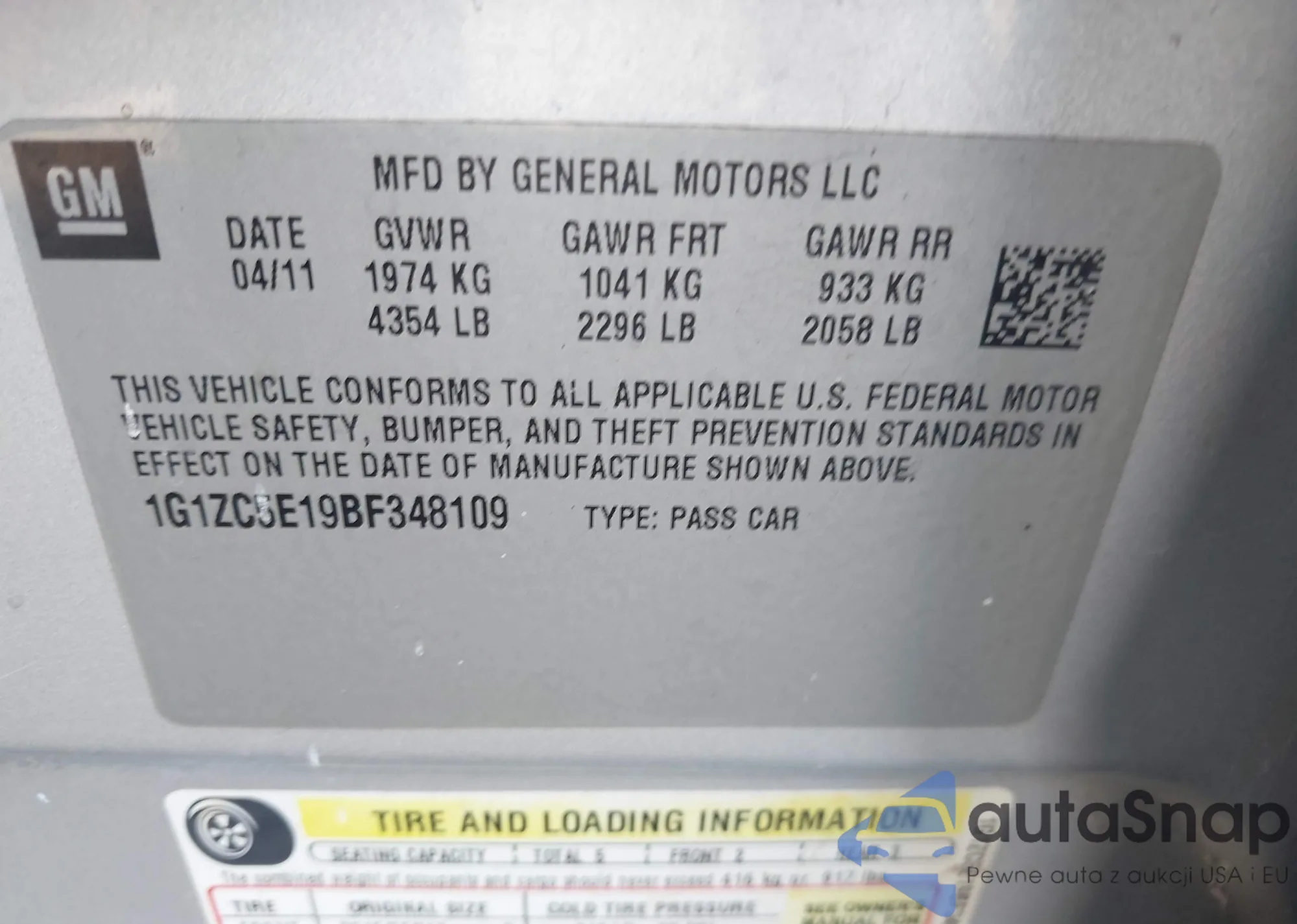 VIN: 1G1ZC5E19BF348109