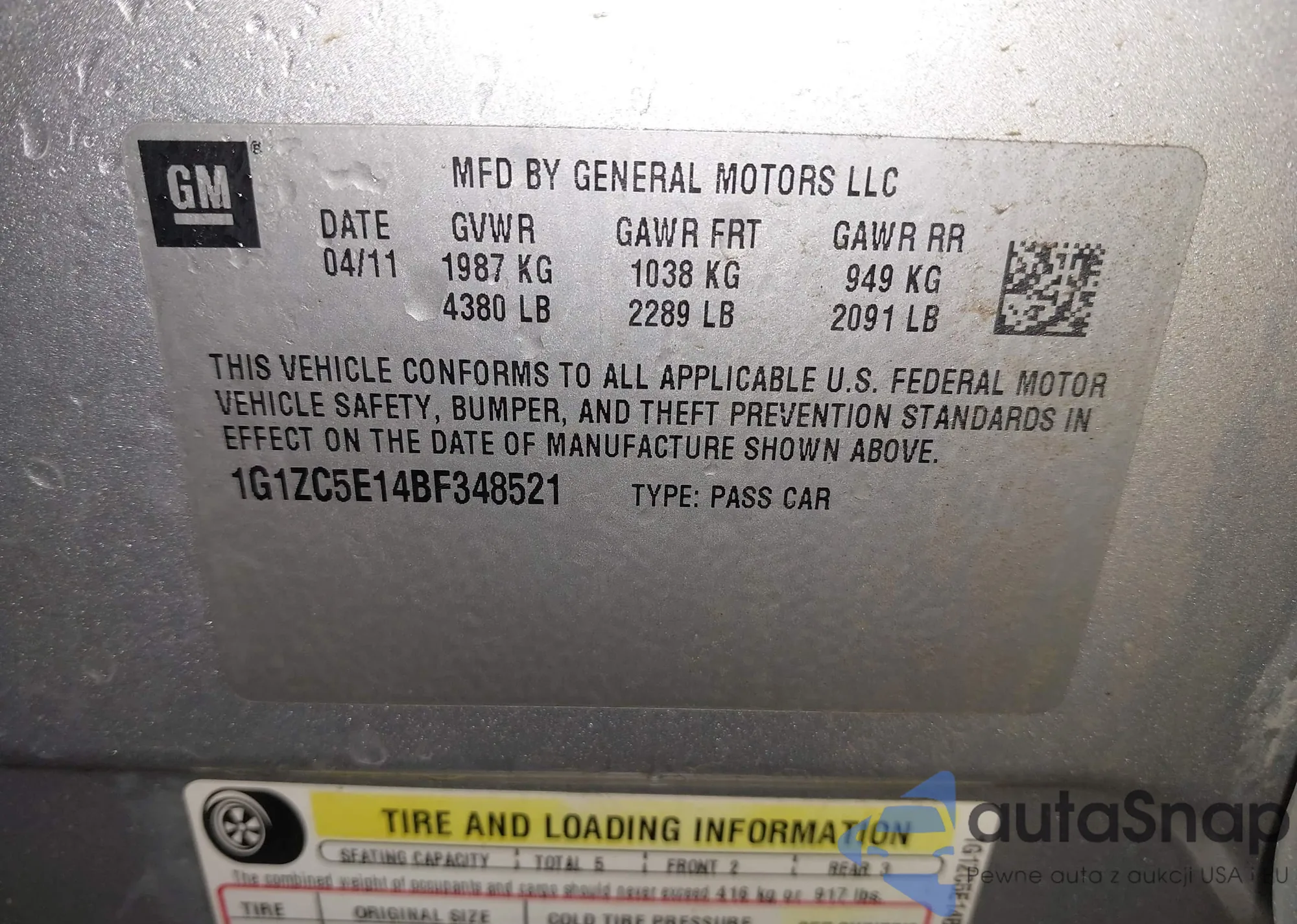 Автомобиль Chevrolet Malibu 2011 (VIN 1G1ZC5E14BF348521) ранее не участвовал в торгах. Документы чистые, пробег соответствует или ниже среднего по рынку. Продаётся страховой компанией — рекомендуем покупку. Доставка в порт займет около 6–8 недель.