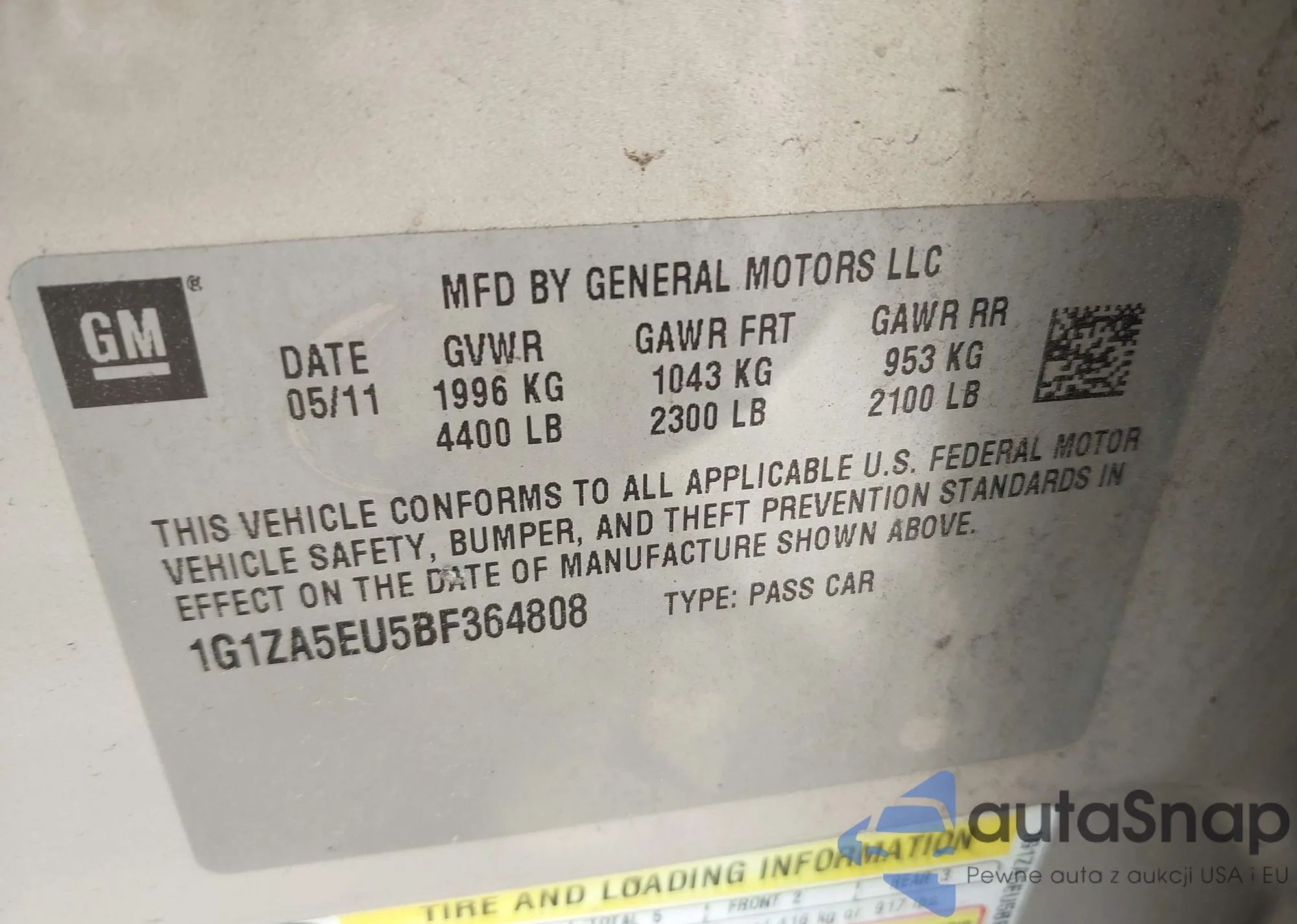 VIN: 1G1ZA5EU5BF364808