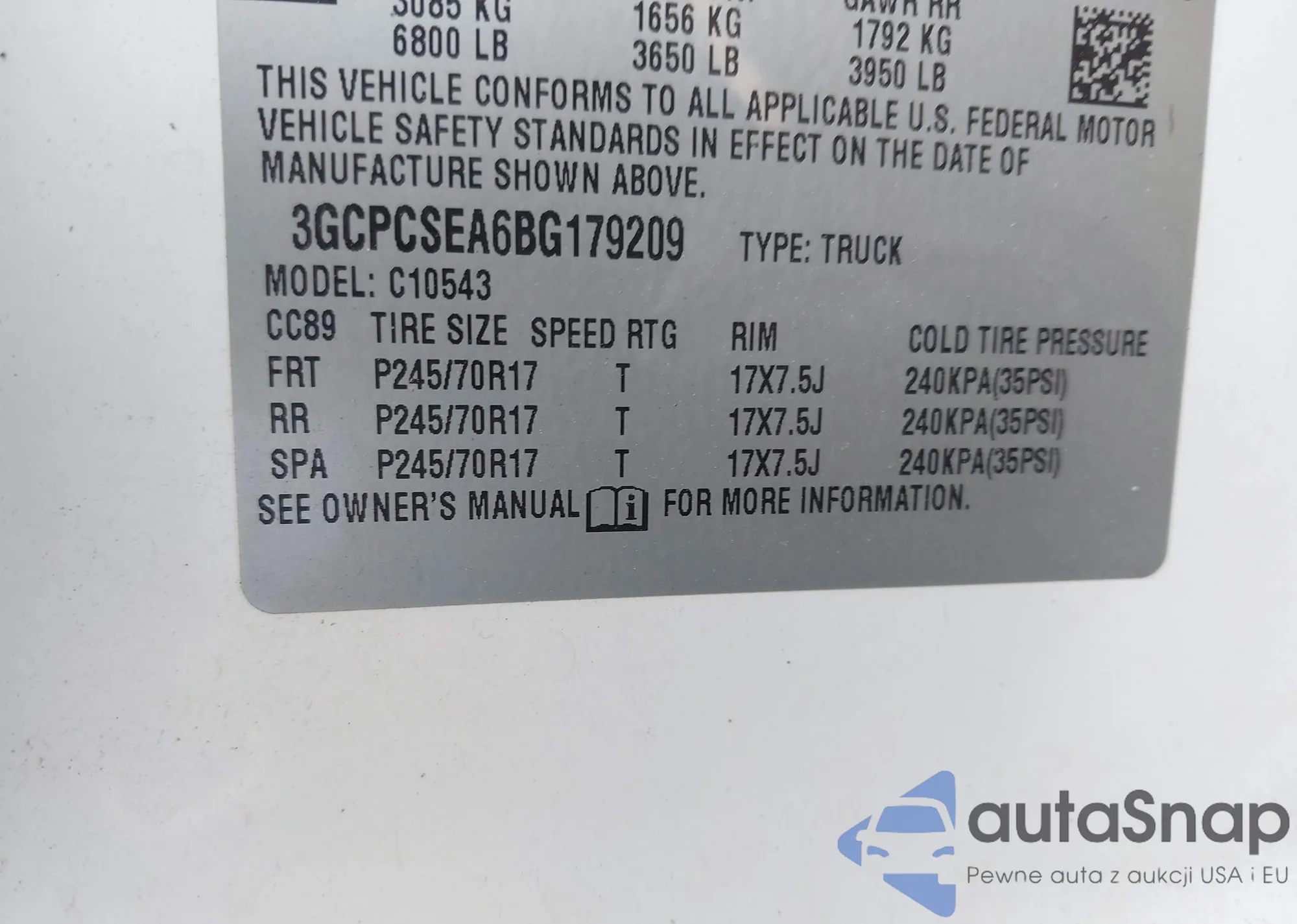 VIN: 3GCPCSEA6BG179209