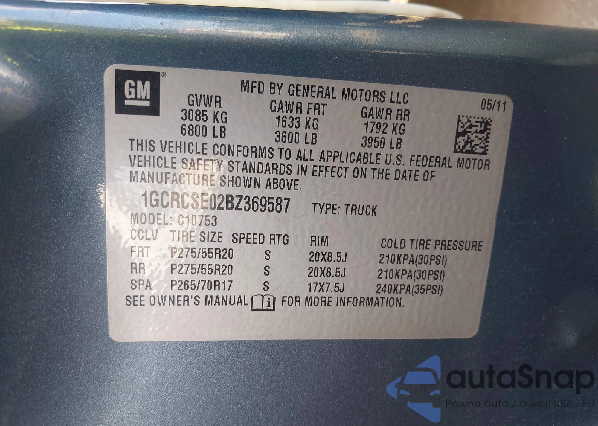VIN: 1GCRCSE02BZ369587