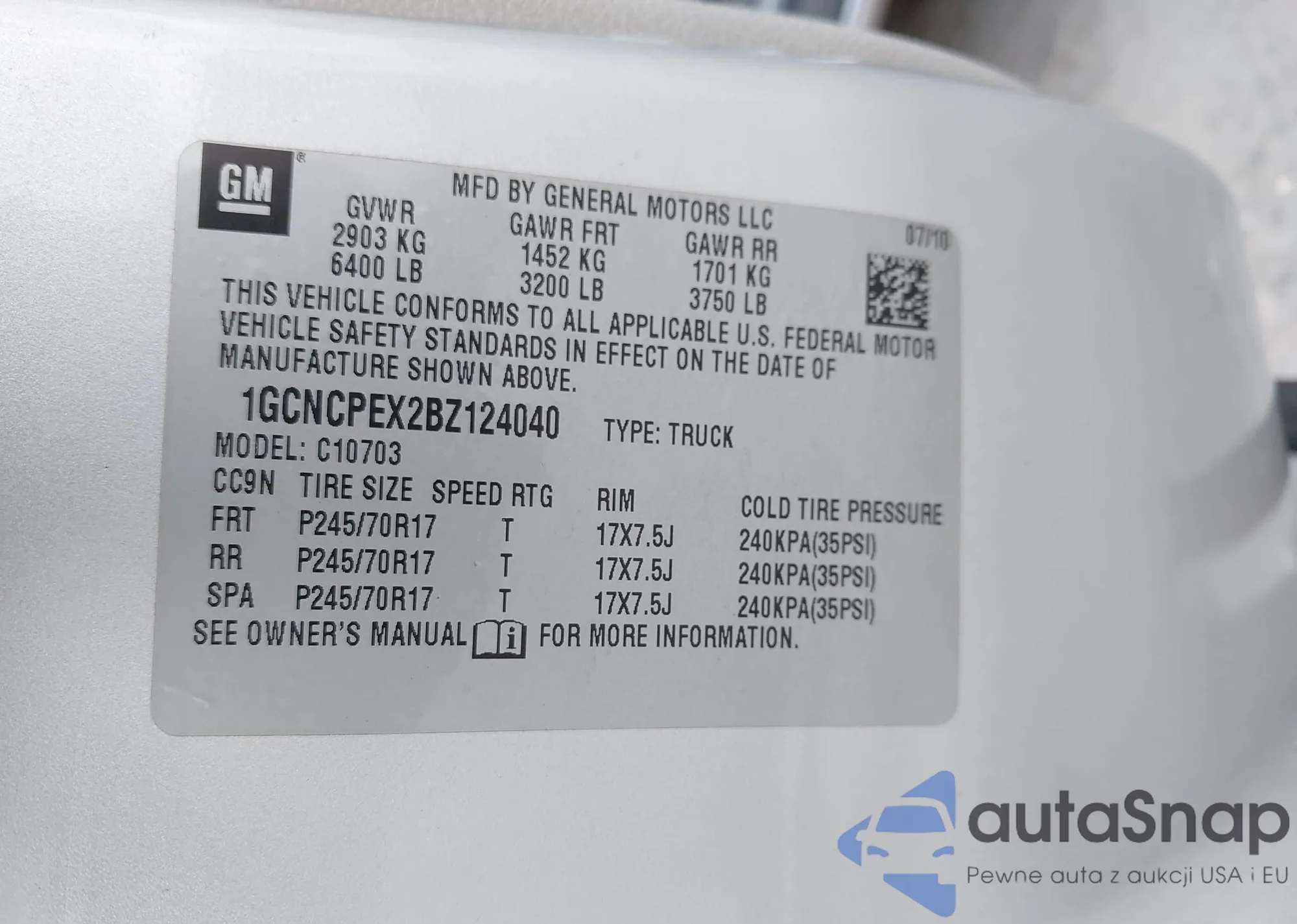VIN: 1GCNCPEX2BZ124040