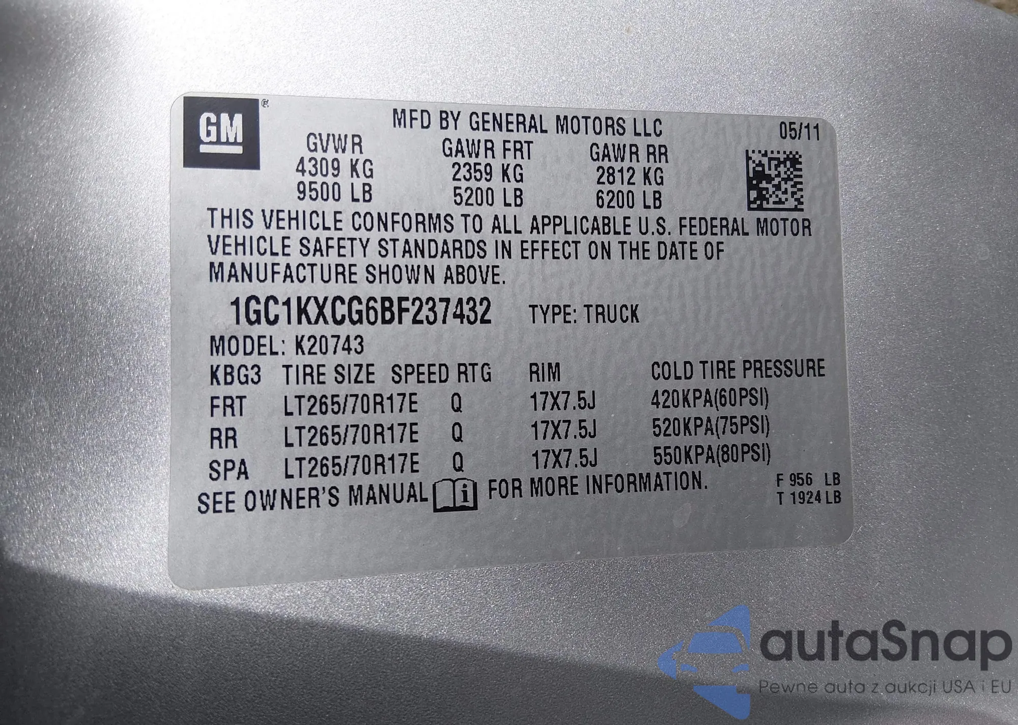 Автомобиль Chevrolet Silverado 2011 (VIN 1GC1KXCG6BF237432) ранее не участвовал в торгах. Документы чистые, пробег соответствует или ниже среднего по рынку. Продаётся страховой компанией — рекомендуем покупку. Доставка в порт займет около 6–8 недель.