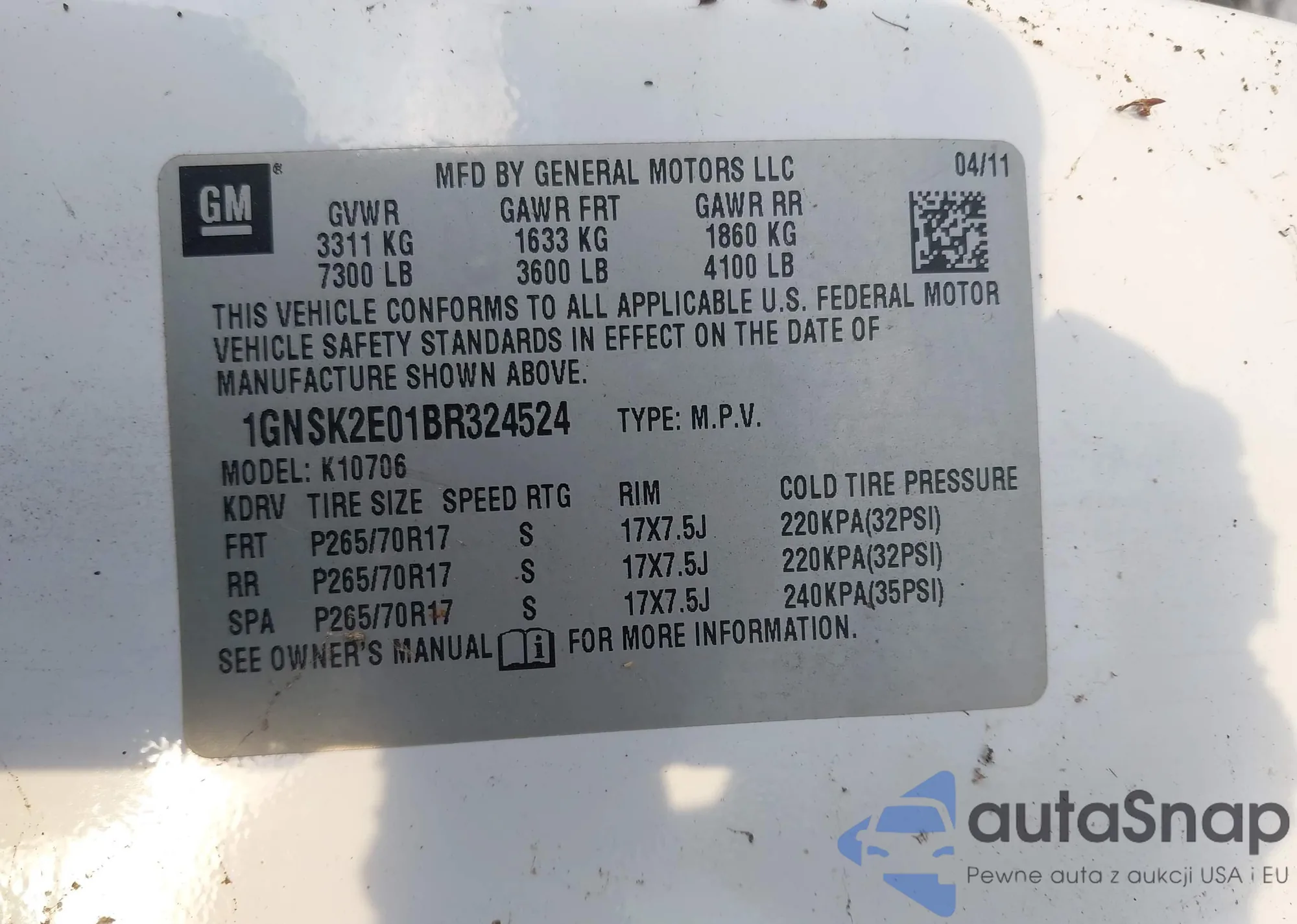 VIN: 1GNSK2E01BR324524