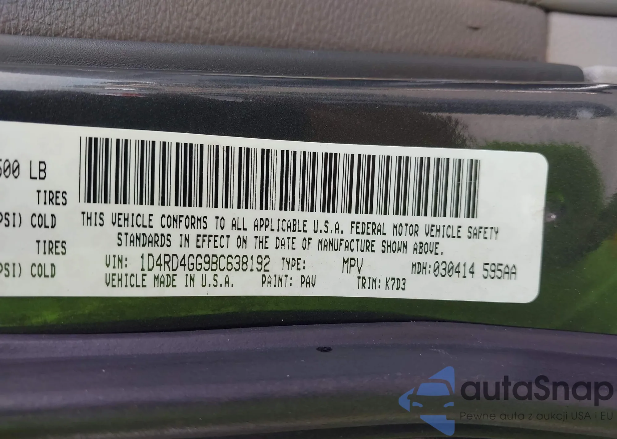 VIN: 1D4RD4GG9BC638192