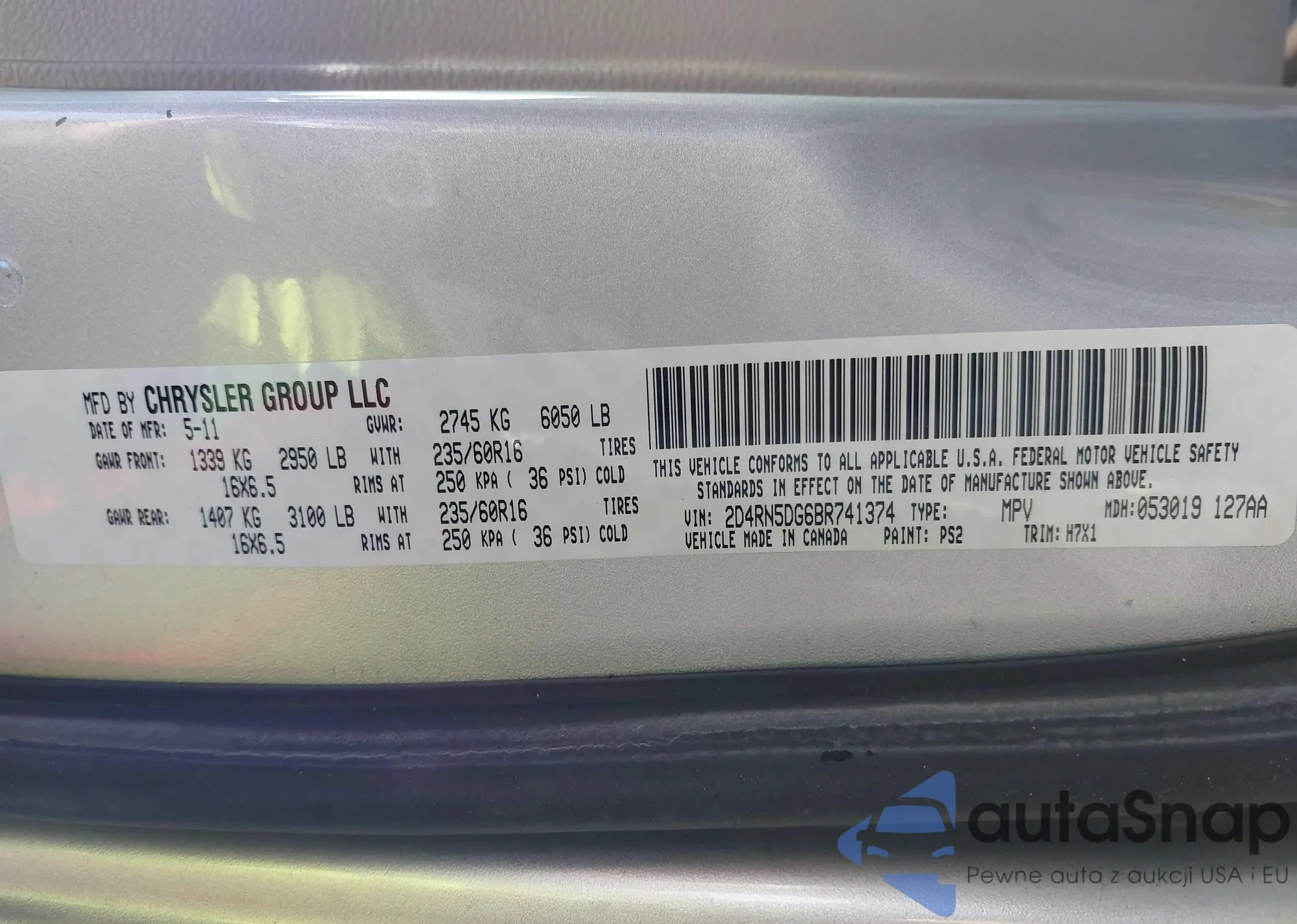 VIN: 2D4RN5DG6BR741374